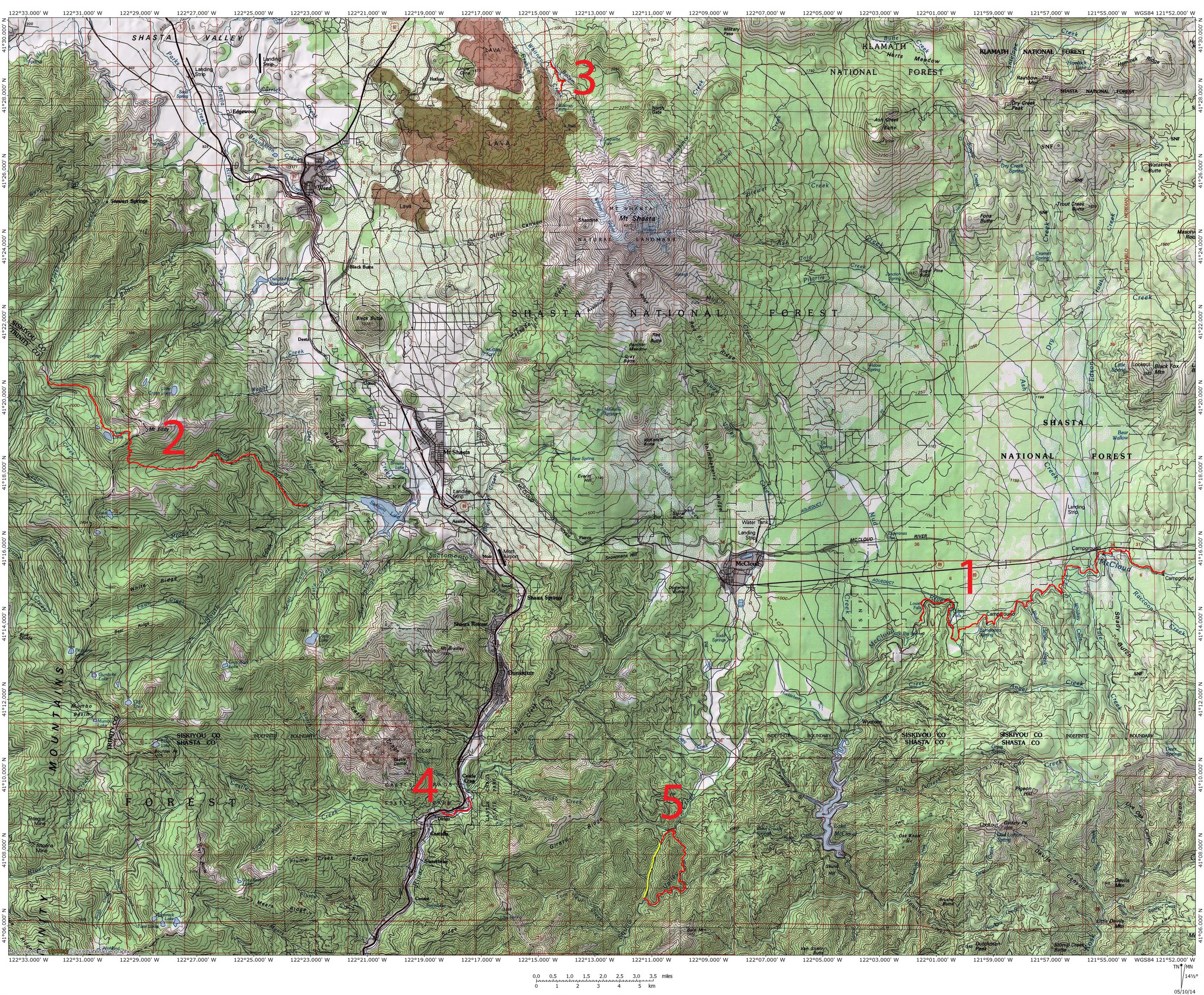 Most of the South Fork’s lakes are divided up between the Gray Rock Lakes and Cliff Lakes basins (read more about them here). These are spectacular examples of classic alpine lakes beset soaring, rocky cliffs. They are impressive destinations by any standard. The other two basins, Gumboot and Soapstone, are very different. Though there are attractive cliffs and rocky points on the ridges above the basins, they are not particularly impressive. Gumboot Basin is not very big but it does contain a pair of nice lakes. This is in noticeable contrast to Soapstone Basin. Although it is by far the largest basin along the South Fork of the Sacramento, it contains no lakes whatsoever. The only body of water present is the diminutive Soapstone Pond. Both shallow and small, the pond is ringed with dense forest and hardly makes a worthy destination for a hike. Still, Soapstone Basin itself is scenic in its own right and worth exploring. Both the Gumboot and Soapstone Basins have trails that climb up the basin headwall and eventually link to the Pacific Crest Trail. Neither trail is very long nor offers spectacular scenery, though they are still scenic enough. However, the sections of the PCT accessed by the two trails offer absolutely spectacular vistas and make awesome destinations for these two modest trails.