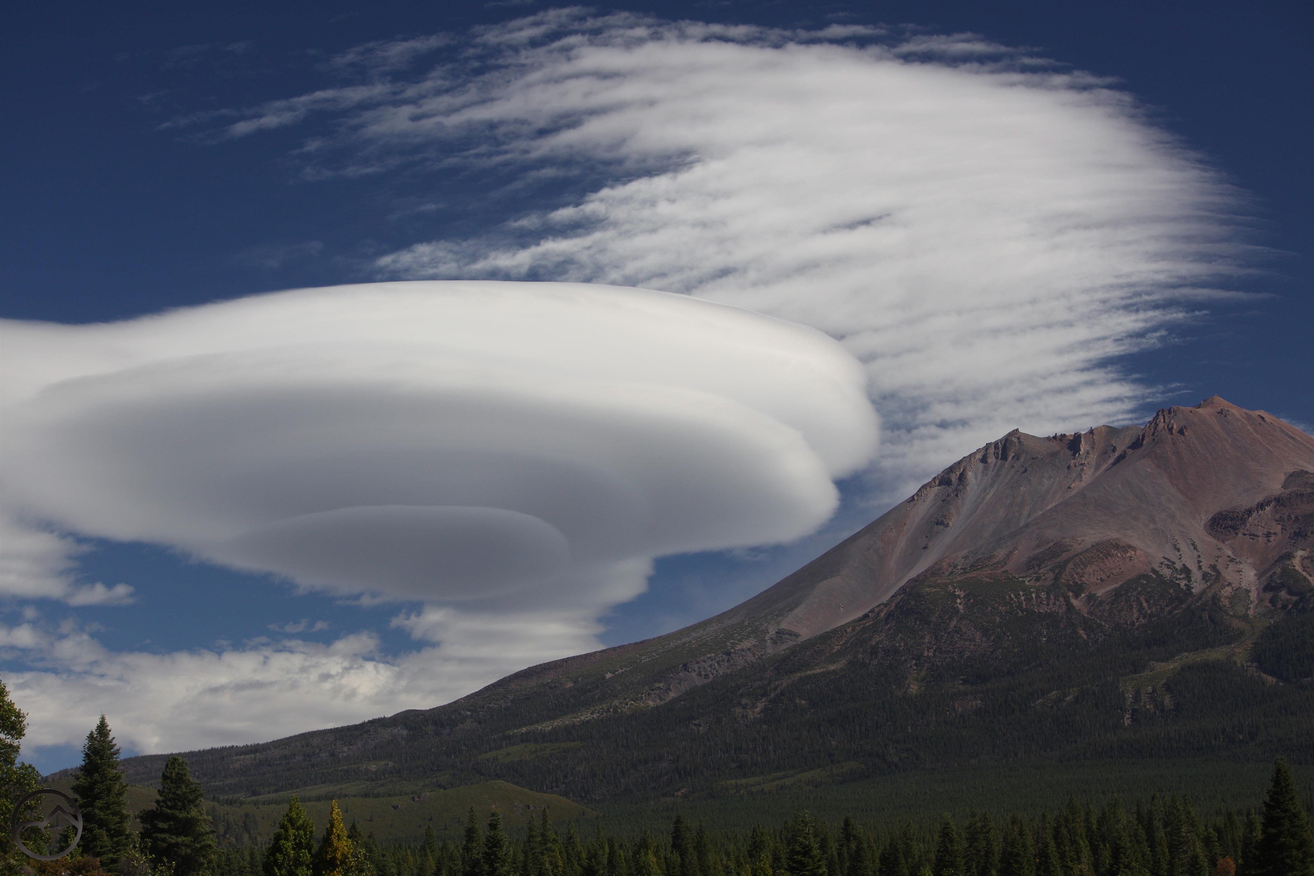 September: As summer begins to fade into autumn, the weather changes are often accompanied by spectacular lenticular cloud displays. In 2014 Mount Shasta may have lost all of its snow (except the glaciers, of course) but the clouds did not relent and it was still a spectacular sight.