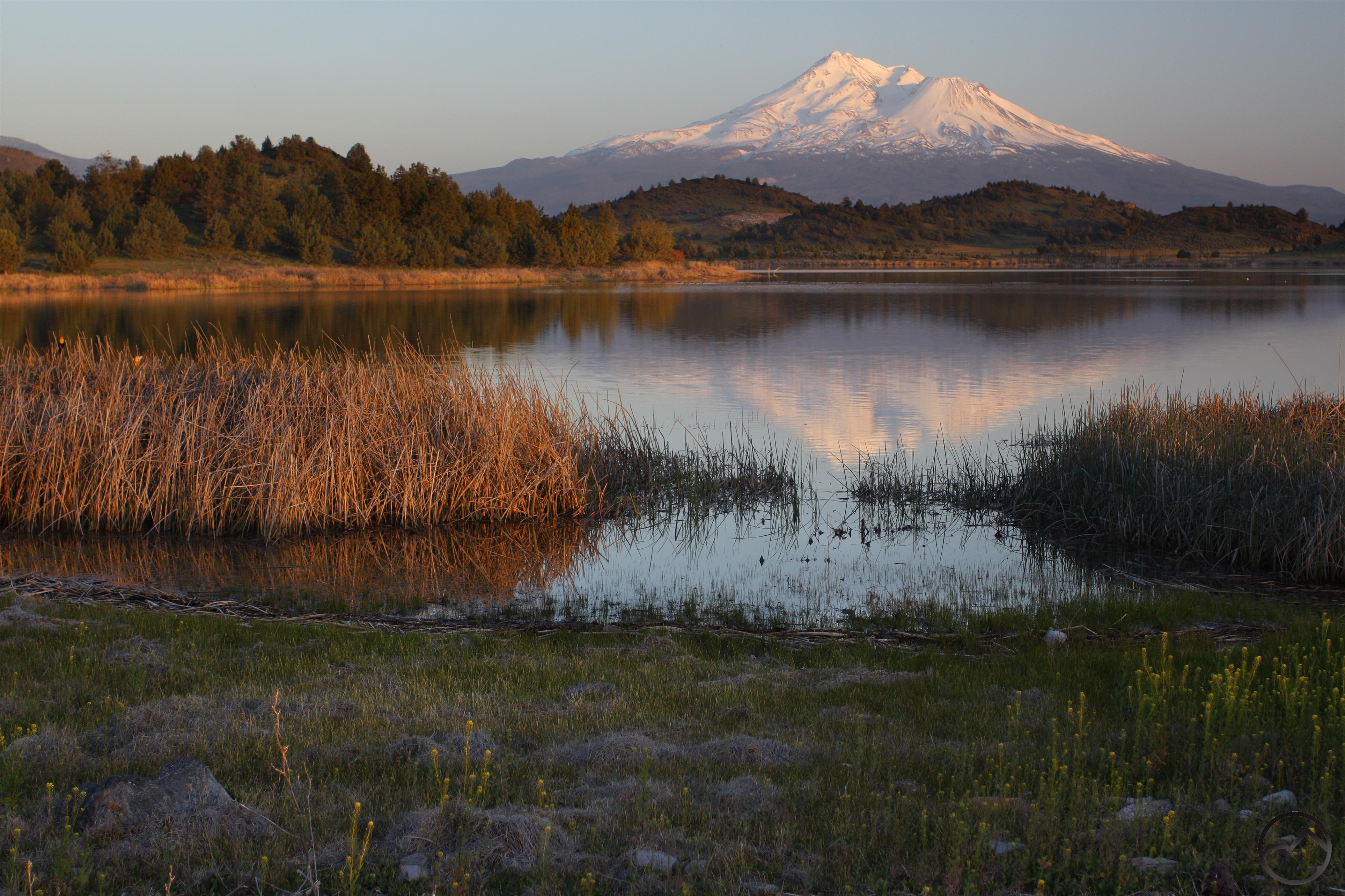 The Shasta Valley Wildlife Refuge is not well known and is a no-frills type of park. Three lakes are found here: Trout Lake, Bass Lake and Steamboat Lake. Of the three Trout Lake is the prettiest. The lake is graced with incredible views of Mount Shasta and hiking along its shores means the constant presence of the enormous mountain. The terrain is a classic high country environment, including juniper trees, sagebrush, lots of exposed rock and expansive grasslands. Spring and fall are the nicest times of year to enjoy this area. In the spring, flowers bloom, the grasses are colored green and red and the weather is perfect. In the fall, the color gold is nearly overwhelming. The grass is gold and the reeds that ring the lake seem to glow with gold light. The hike along the edge of the lake highlights the high desert and offers plenty of opportunities to enjoy the beautiful views of Mount Shasta and the high peaks of the Cascade Crest, including the Goosenest and Willow Creek mountains.