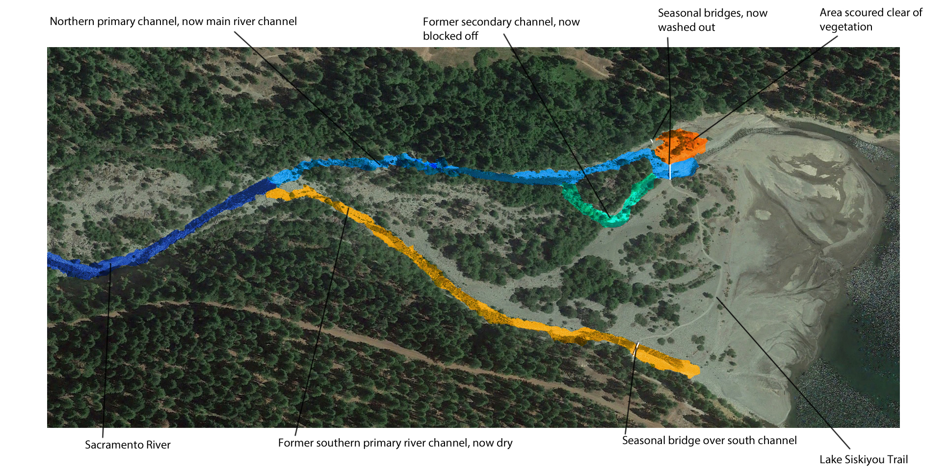 These arid areas make particularly great places to hike in the winter and spring. The Shasta Valley has a few noteworthy hikes that highlight the great diversity of Mount Shasta’s rain shadow. However, the most surprising feature is the presence of the water jewels of Trout Lake and Lake Shastina. Neither lake is natural, but both are glittering oasis in the land of dryness. Lake Shastina is formed by impounding the Shasta River, a ribbon of life that waters the Shasta Valley. Trout Lake is a bit different. There is originally a small natural pond, fed by springs. A pair of short levees bottle up the small valley and the springs have inundated it, enlarging the pond to the lake’s present size. Both lakes are beautiful in their way, contrasting the cool blue water against the rocky, hardscrabble, high desert land.