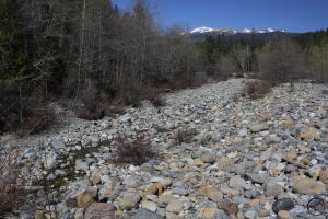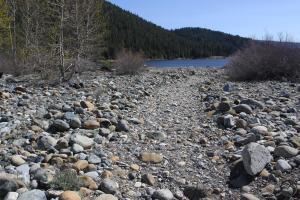 The Shasta River flows northward through the Shasta Valley from the flanks of Mount Eddy until it joins the Klamath River. Most of its journey passes through private land and access is limited. However, there is a public access area at Lake Shastina, where the river’s swift flow is temporarily stilled. Although no official trails are maintained, there is a well established route up an unnamed butte that is nearly an island in the lake when water levels are high. Despite the nearby presence of large stands of ponderosa pine, the butte is part of a distinctly high desert environment. When the lake is full (it is drawn down at times) it is a glittering gem in the midst of the high desert. The hike up to the summit of the butte is never out of sight of Lake Shastina. There are also great views of Mount Shasta, Mount Eddy and the Trinity Divide.