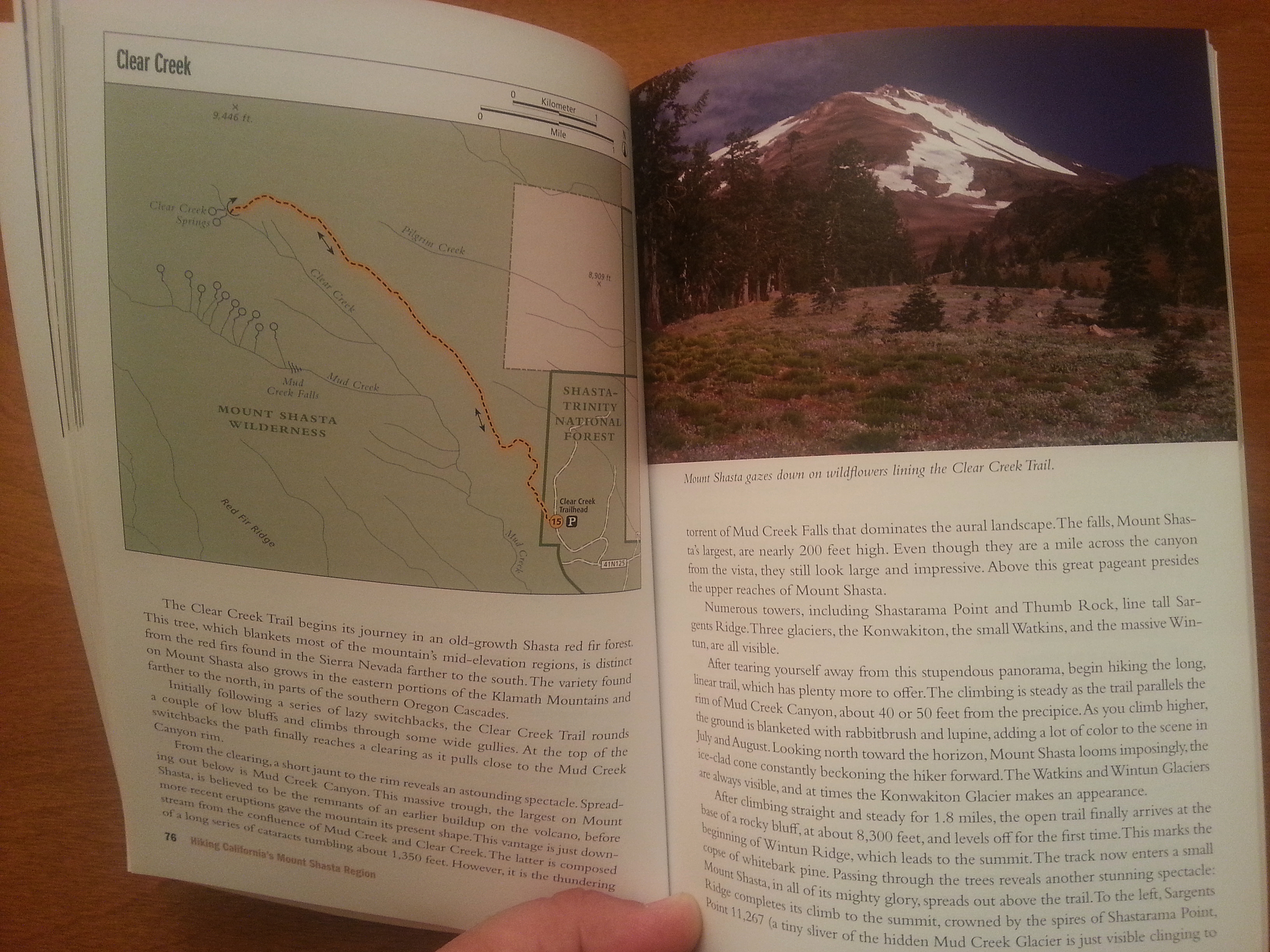 One does not usually associate McCloud with trails on Mount Shasta yet the fact remains that two of the best trails on the mountain must be accessed from McCloud. The Clear Creek and Brewer Creek Trails are splendid alpine hikes that boast numerous superlatives. They climb high above treeline, have incredible views of Mount Shasta and many of its attendant glaciers, views of magnificent waterfalls and views of much of Northern California lying to the south and to the east. Delicate meadows and clear-running streams are found along these paths, as are ancient forests of trees that are large and robust as well as stunted krummholz forests. Simply put, these are two of the best trails in Northern California and McCloud should lay claim to them, since it is necessary to pass through town to reach them.