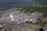 - Ash Creek Butte rises above Surprise Lake, part of the remains of an ancient glacier
