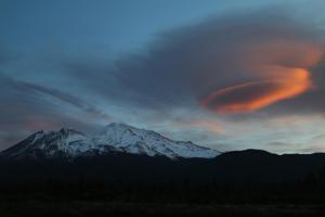 One of the great things about Mount Shasta is its tremendous relief. It towers around 10,000 feet above the surrounding landscape, a single, prominent tower, alone in its lofty isolation. Not only is it the highest peak in the region by a pretty large margin, its prominence is enhanced by the fact that it is surrounded by valleys on three sides. The Shasta Valley on the north, the Strawberry Valley on the west and the McCloud Flats on the south all combine to accentuate the mountain’s great height, since there are no foothills to obscure the immediacy of Mount Shasta’s rise. Consequently, the mountain is easy to view from almost every direction. Indeed, one can hardly go anywhere without the giant volcano’s brooding presence. This makes enjoying the mountain easy, since it seems like a constant companion and one hardly has to go out-of-the-way to view it. That being said, there are several superlative sites that offer great views of the mountain with a bit of a twist from the ordinary perspective one gets while driving through town or through the valleys. Even better, there are many good places to enjoy the mountain that do not require a hike to get to. Simply drive up, hope out of the car and take in the incredible beauty of Mount Shasta. While many of these are great all day, sunset is perhaps the best time to take advantage of the spots. It is a real treat to be able to take advantage of the quick access to a magnificent view as the sun goes down and alpenglow takes hold of Mount Shasta. As Teddy Roosevelt said, “I consider the evening twilight on Mount Shasta one of the grandest sights I have ever witnessed.”