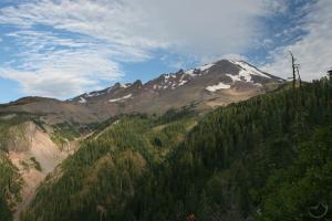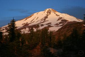 Mount Shasta rises majestically above the Brewer Creek Trail.