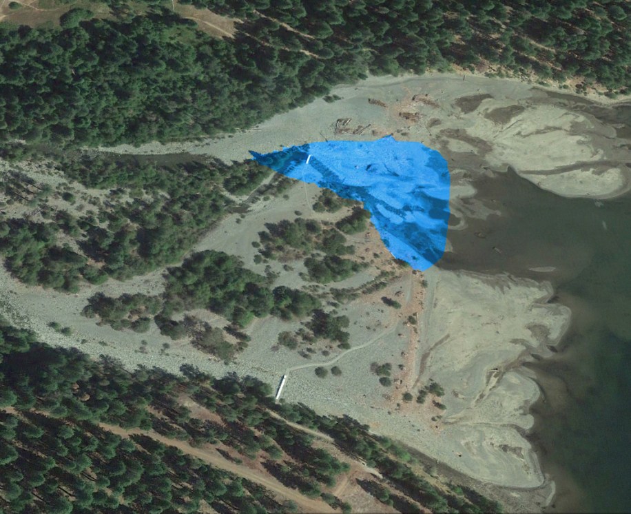 The blue highlights indicate the areas washed out in the winter of 2016/2017.