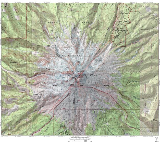 In light of this, I thought it would be interesting to compare the Cascade Volcanoes and how much area they have above the tree line. Since the tree line fluctuates, I picked 6,000 feet as a point of reference since it is at or near tree line at most of the big volcanoes in the range. I decided to begin at the southwest corner of each mountain since this is the position of the Everitt Vista, which is reference point on Mount Shasta. I measured each volcano from the 6,000 foot contour in the southwest to the 6,000 foot contour in the northeast. This way there is some degree in uniformity in what is being measured. The series of measurements begins with Mount Shasta, which is the baseline for comparison, and then travels north up to Mount Rainier, which is Shasta’s only real peer in the Cascades.