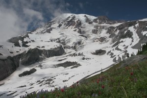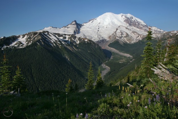 Going north from the Sierra along the Pacific Crest, the northern latitude drops the elevation of the tree line considerably. Here in Mount Shasta at the southern end of the Cascade Range, the tree line sits at around 8,000 to 8,500 feet. In the northern latitudes of the Cascade Range, tree line is found at about 6,000 feet. This means mountains with comparable size and elevation like Mount Shasta and Mount Rainier are going to have strikingly different appearances. The extra 2,000 feet of alpine terrain on Rainier contributes to glaciers being larger, more abundant and creeping far, far lower down the flanks of the mountain. Indeed, the Carbon Glacier on Mount Rainier flows all the way down to about 3,600 feet above sea level. On Mount Shasta the glaciers struggle to extend below 10,000 feet.