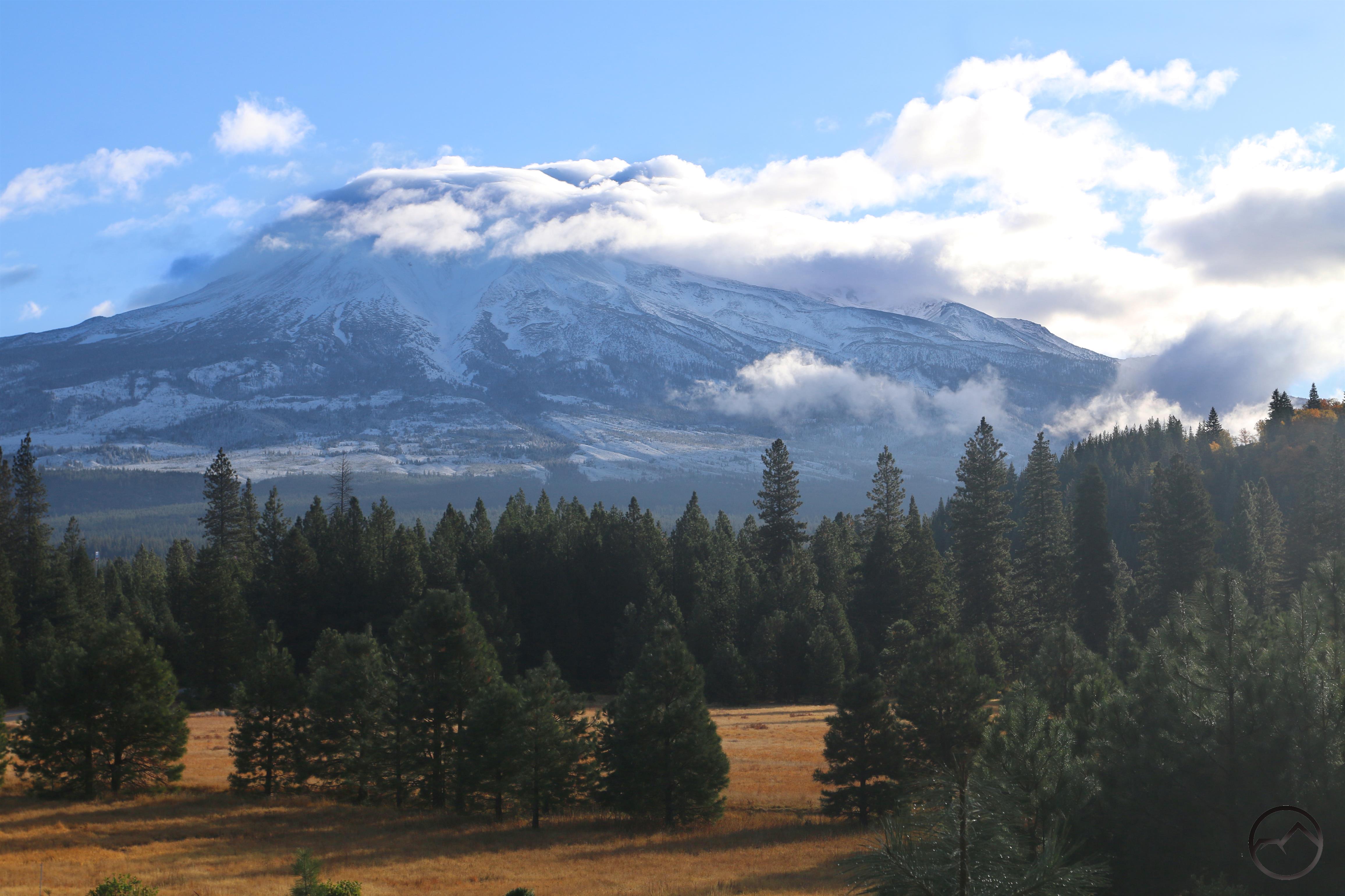 Fresh snow blankets Mount Shasta.