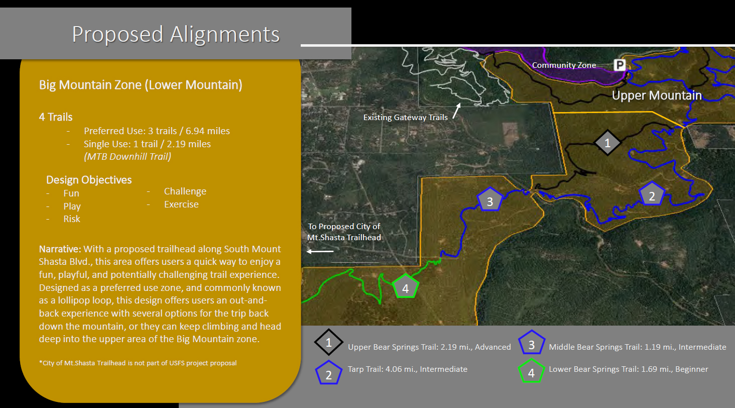 The scope and nature of this project is impressive. When completed, this will be an incredible resource for all of southern Siskiyou County. Although already a destination for outdoor enthusiasts, this trail network will likely significantly increase the number of people coming to this area to enjoy the recreational opportunities. For locals, who already have an abundance of riches when it comes to trails and things to do in the outdoors, this will be an over-the-top opportunity that will change the nature of hiking and biking in Mount Shasta. It is exciting to contemplate all the possibilities. All those who have been involved in the planning are to be highly commended!