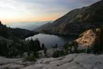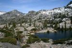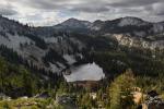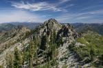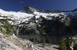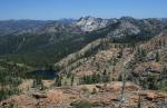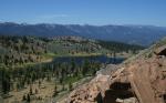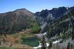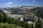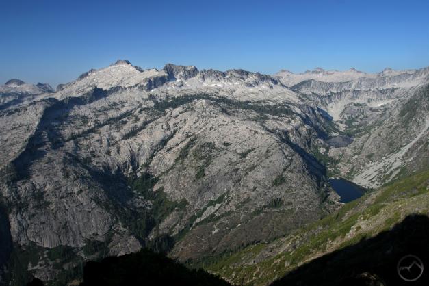 Looking down on Emerald and Sapphire Lakes and the craggy heart of the Trinity Alps.