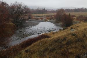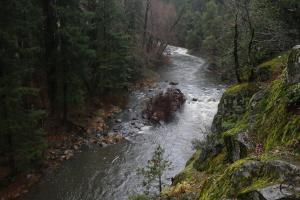 Highway 299 is deep within the fog covered Trinity River Canyon.