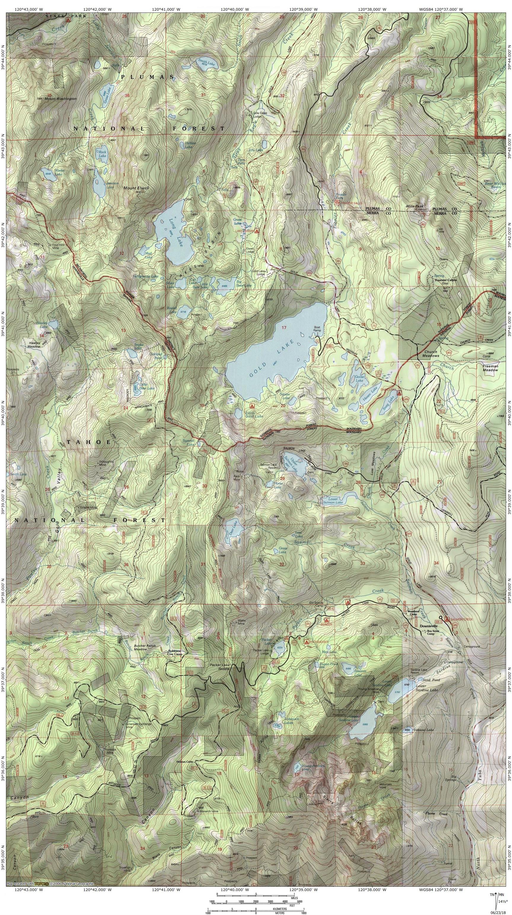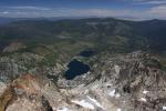 The Lakes Basin area is situated on the divide between the Middle Fork of the Feather River and the North Fork of the Yuba River. Strictly speaking, the Lakes Basin proper lies at the northern end of this glaciated area, focused on the basin containing Long Lake. However, the area is geologically cohesive and glaciation and lakes abound, making the name Lakes Basin appropriate to the whole area. In total, there are 6 primary lakes basins here. From north to south, these are the Jamison, Lakes Basin (proper), Gold Lake, Salmon Lake, Packer Lake and the Sardine Lake basins. Worth noting, the Lakes Basin proper, which is around Long Lake, is the centerpiece of the Lakes Basin Recreation Area, which has several improvements including multiple trailheads, and campground and a good trail network. It is this specific area that lends its name to the whole region.