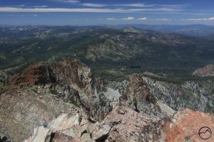 - Looking toward the summit lookout tower on the Sierra Buttes.