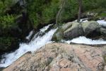 Not only are there plenty of lakes and some rugged topography, there are also some excellent waterfalls to be found in the Lakes Basin area. There are several attractive cataracts on Gray Eagle Creek, many of which are accessed as part of the trail network that rings Long Lake. Some quality cascades are also to be found at the Sierra Buttes, especially between the Sardine Lakes. However, the most notable waterfall in the Lakes Basin area is Frazier Falls. Dropping 175 in a succession of vertical cascades, it is one of the tallest waterfalls in the entire northern Sierra. The falls are accessed by an easy 0.5 mile trail.