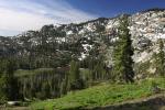 One of the northernmost outposts of rugged, alpine terrain in the Sierra Nevada, the Lakes Basin area is a fantastic hiking, camping, kayaking and mountain biking destination. Boasting nearly 4 dozen named lakes and numerous unnamed tarns, this area lives up to its limnic name. Most of the lakes are set beneath rocky cliffs, which make the area a scenic feast for those who come to enjoy this excellent mountain region. While most of the area is rugged, it is not particularly craggy, with only a few notable mountains make an appearance. Instead, the area exhibits its asperous nature in a more friendly manner. The cliffs are tall, but not exceptionally so. The lakes are varied in size and set in accessible basins, some of which are low and can be driven to while others are high and require long hikes to reach. It is this balanced but beautifully rocky nature that makes the Lakes Basin area such a fantastic hiking destination.