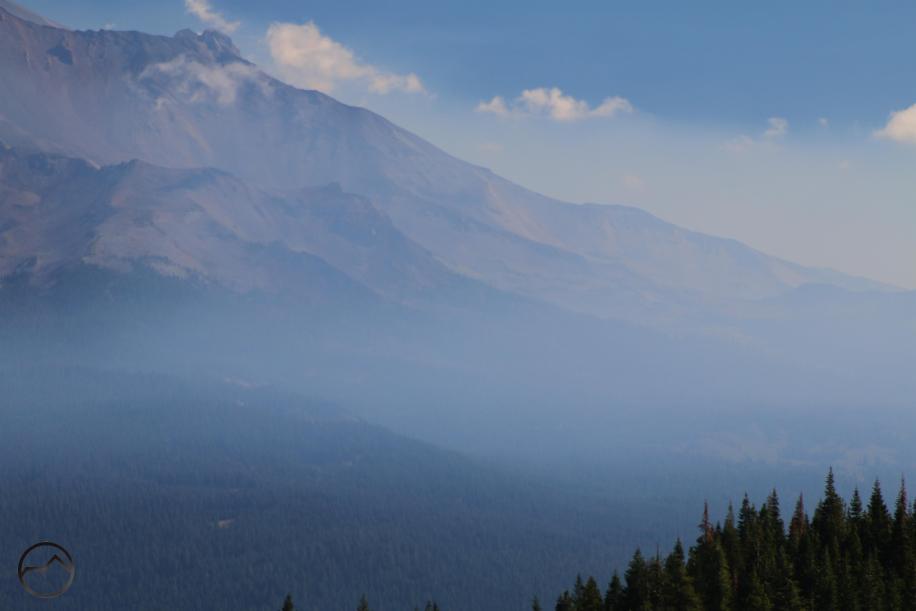 Smoke encroaches on the southern end of Mount Shasta.