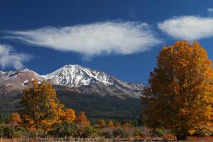 The Mount Shasta area is not well known for having great fall color. However the area does have some spots where the autumnal foliage can be pretty intense. This is due, in large measure to oak trees and the many trees that line riparian areas. Hiking along the Sacramento River, the McCloud River and Squaw Valley Creek are all places that are good bets to see some great collections of trees turning shades of red and gold. Aside from these areas, look for places with lots of oaks or willows to catch some of fall’s excellent spectacle. For those hungry for aspens, there are a few places to catch them, especially north of Mills Meadow and also a massive grove located near Tennant.