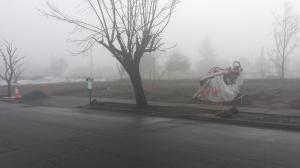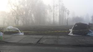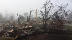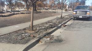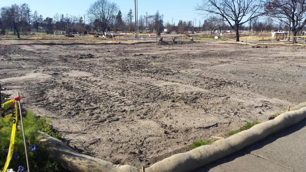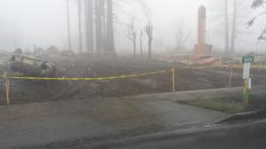 Once the clean up began, the sites were cleared fairly quickly. Driving around in the Sonoma County fog, the neighborhood seemed like an apparition. The home debris was cleared but the burned cars were left stacked because they would be handled by auto insurers rather than homeowners insurance. Once they were assessed by adjusters, they would eventually be hauled away.