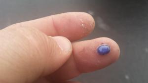 After sifting for a couple of days we broke camp and returned to our homes (or in my parent’s case Honor Mansion, where the owners, good friends of my parents, put them up for three months following the fire!). Before leaving, we shoveled the ash around the excavation site into almost a dozen 5 gallon buckets with the intent to sift through them at a later date. We then covered the area up, unsure what, if anything we were going to do in the future. I came back down a few weeks later to cut the trees down and toss them into the ruins so they would be hauled away when the site was cleaned up. I removed the metal and looked down in the hole. Sitting right on the surface of the ash was a huge diamond! What were the odds! I snapped a quick image before grabbing the nifty little rock.