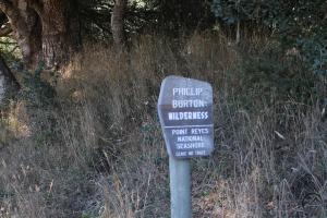 A sign along the Bear Valley Trail at Point Reyes National Seashore marks the wilderness boundary.
