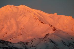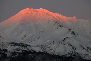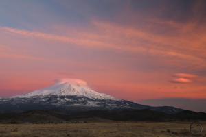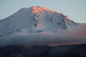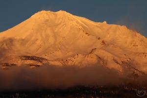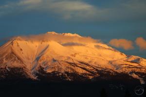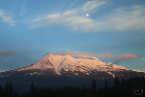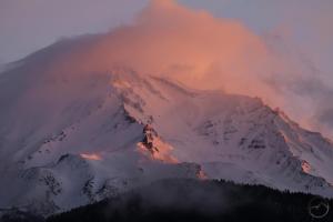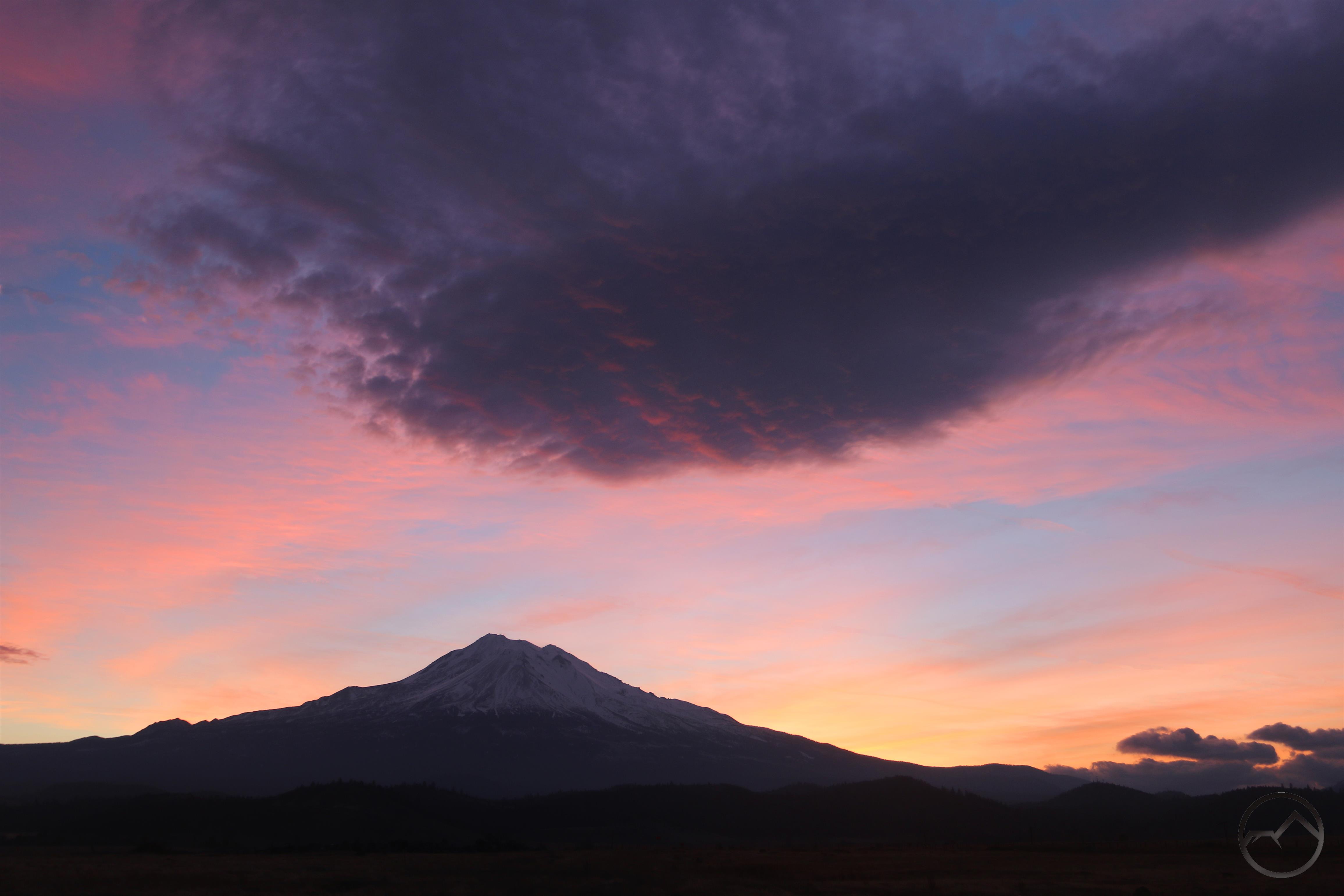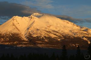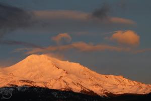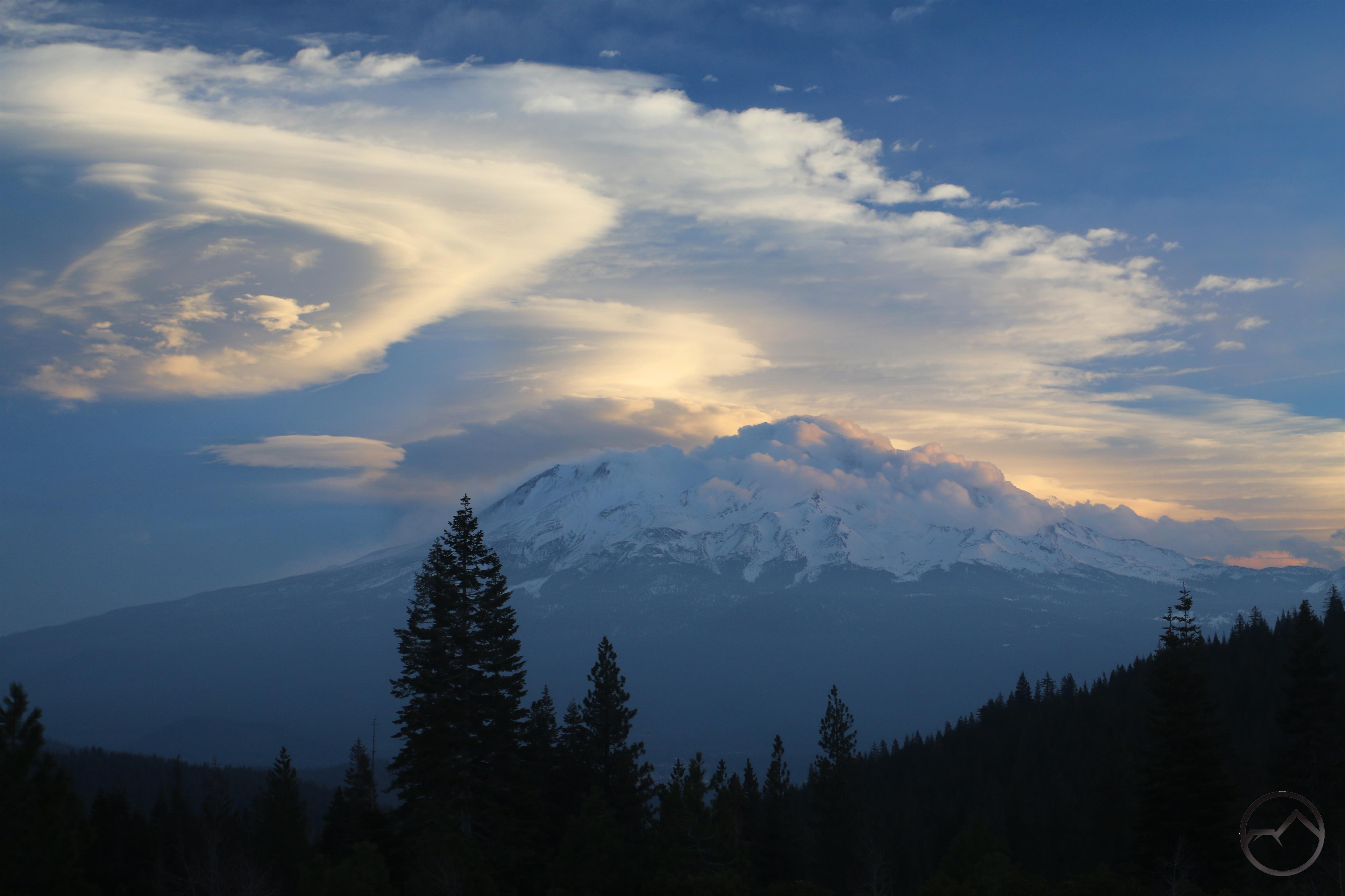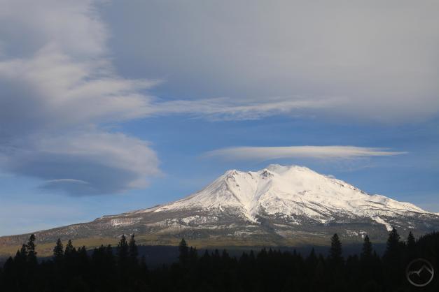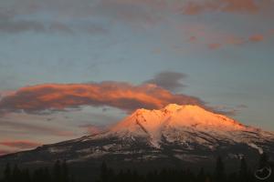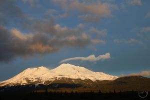 The day eventually got overcast and a large stack of lenticulars once again formed over Mount Shasta. I determined to set out around sunset and see if there was enough light to capture the clouds in their glory. However, by the time I was in a position to photograph the mountain, conditions had changed considerably. It was still glorious.