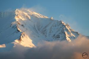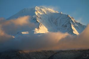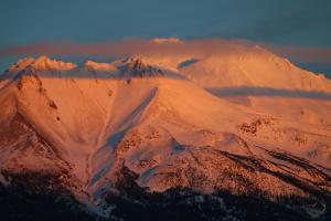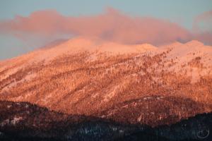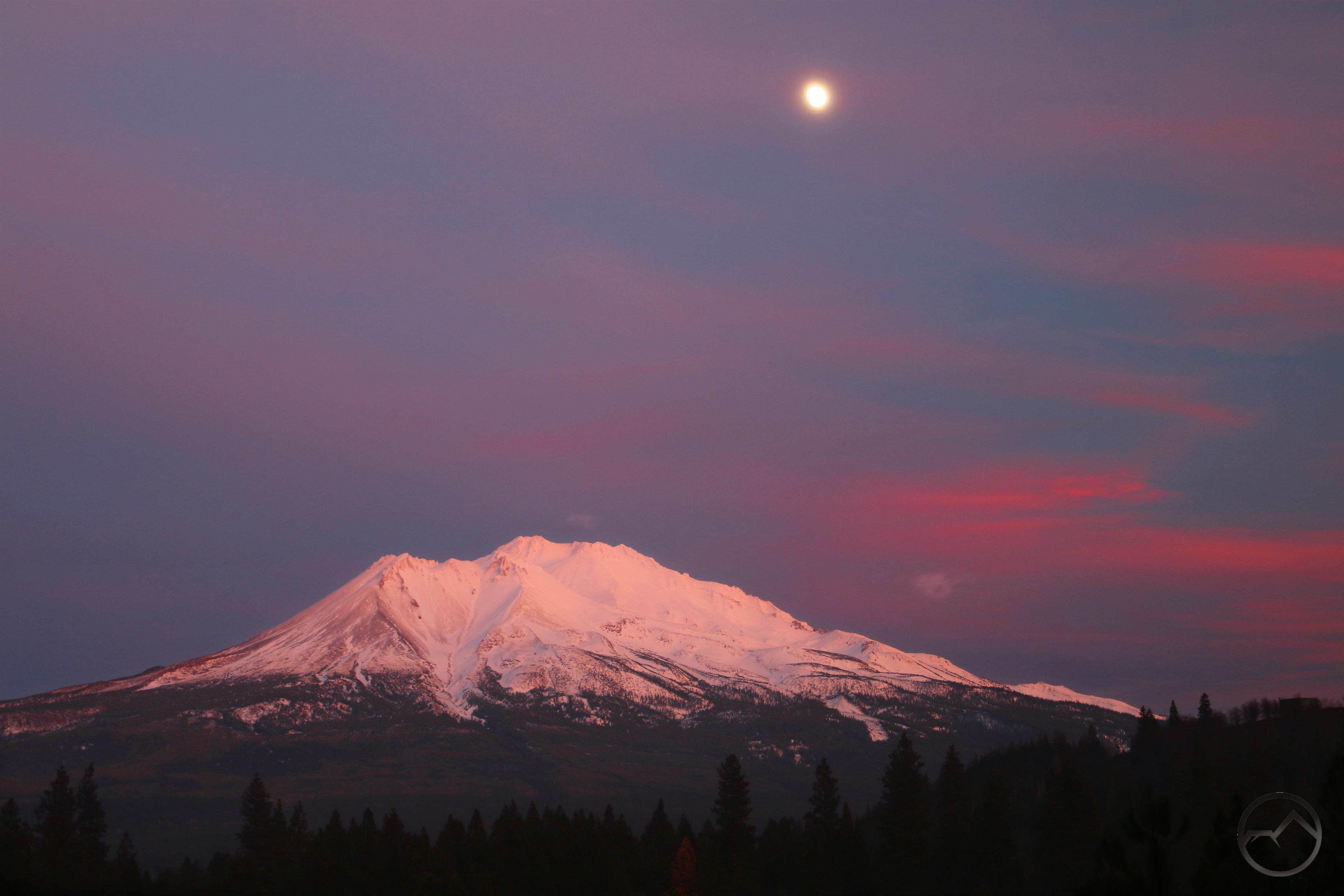 Although a single, large lenticular had formed south of Mount Shasta that afternoon, I decided to forgo trying to capture it at sunset, as I had lots of family still at my house and I we were having a merry time. Nonetheless, the next morning on Sunday, I once again headed out to capture the sunset. This time I headed over to McCloud and enjoyed the sun light illuminating all the crags of the Mud Creek Basin. This is the best perspective on sunrise!