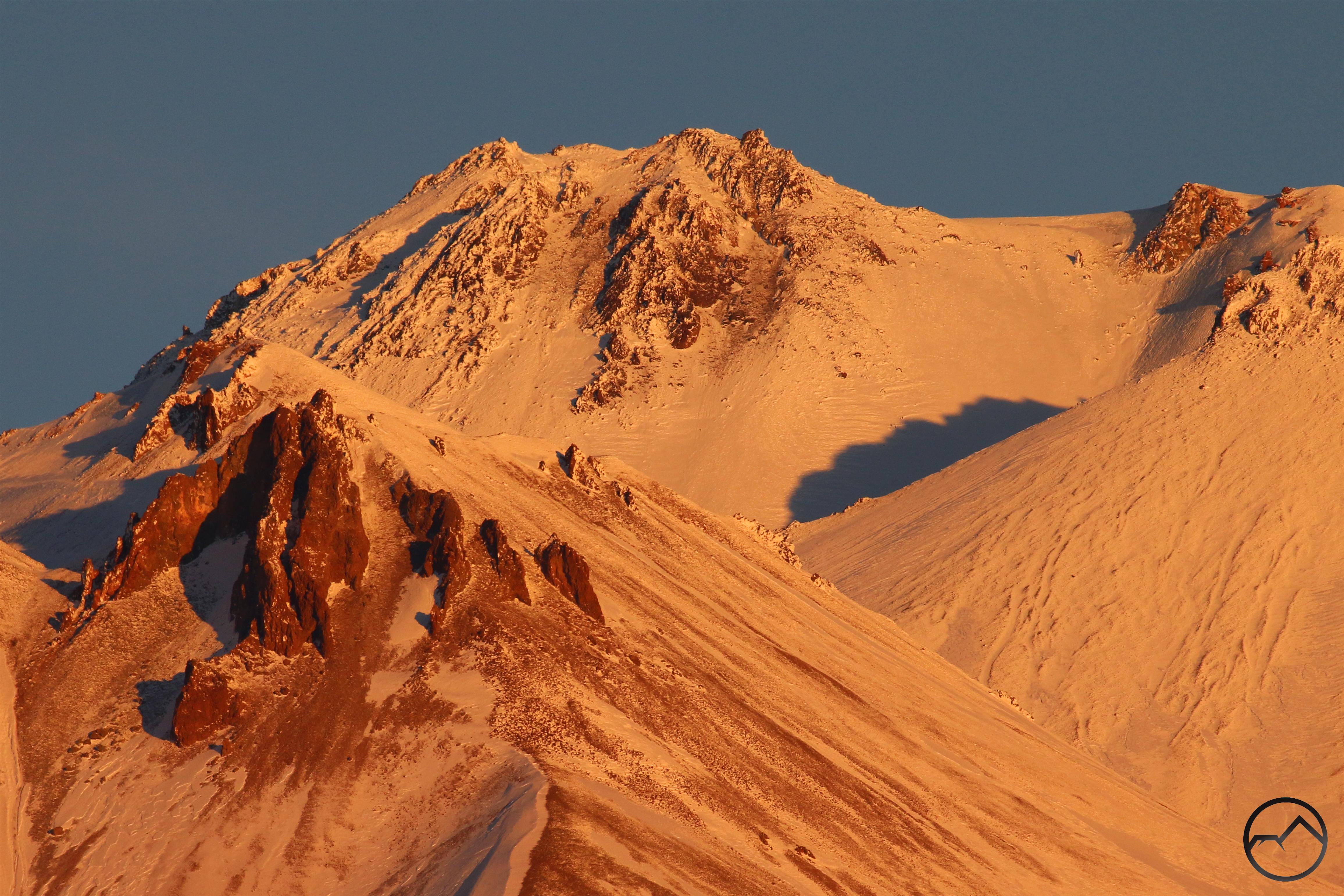 With the new lens I was gifted, I can capture more of the drama and detail of Mount Shasta’s terrain. A lot of these features are really under-appreciated by most save avid climbers. I aim to appreciate them now! This perspective really contrasts the summits of Shastina and Mount Shasta, which is nearly 2,000 feet higher. The uppermost head of the Whitney Glacier is visible from this perspective as well, just below the almost snowless triangle of rock in the upper right. The large tower at the head of Diller Canyon has always been a favorite of mine. I look forward to exploring it more!