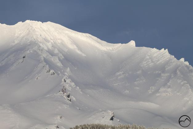 The real highlight came in the mid-afternoon. I took my daughter to her dance class and I had an hour to kill with her brothers before picking her up. As the kids ran around Sisson Meadow, a nice lenticular formed over the mountain. Making the scene even more interesting was the filtered light that gave Mount Shasta a dappled appearance. The light also highlighted a lot of Shasta’s features, especially those around Avalanche Gulch. Snow covered everything and the features that jutted out of the flanks to for the jagged landscape were thickly coated with rime ice.