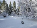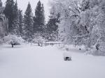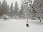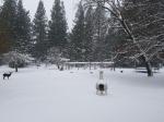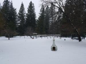 As I noted, this storm was a miserable one. The snow started off dry and powdery but it eventually came down like Sierra cement. When it started to rain, it all began to melt. Soon it was like living in a giant slurpee. My backyard always makes a good test for how the storms look:
