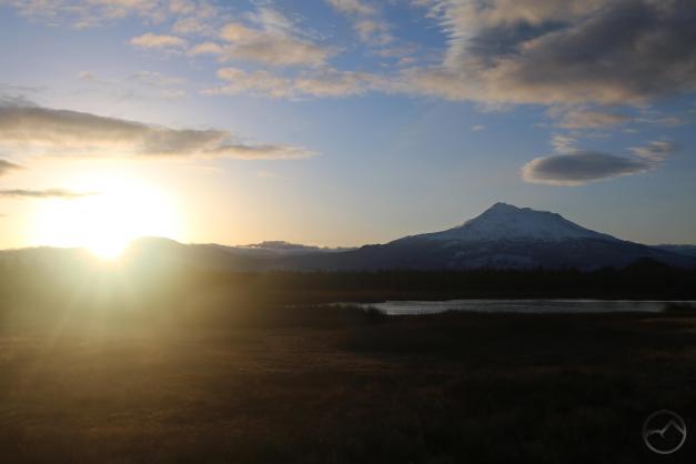 A beam from Thursday’s setting sun cuts across the Little Scott Mountains and the Shasta Valley.