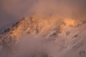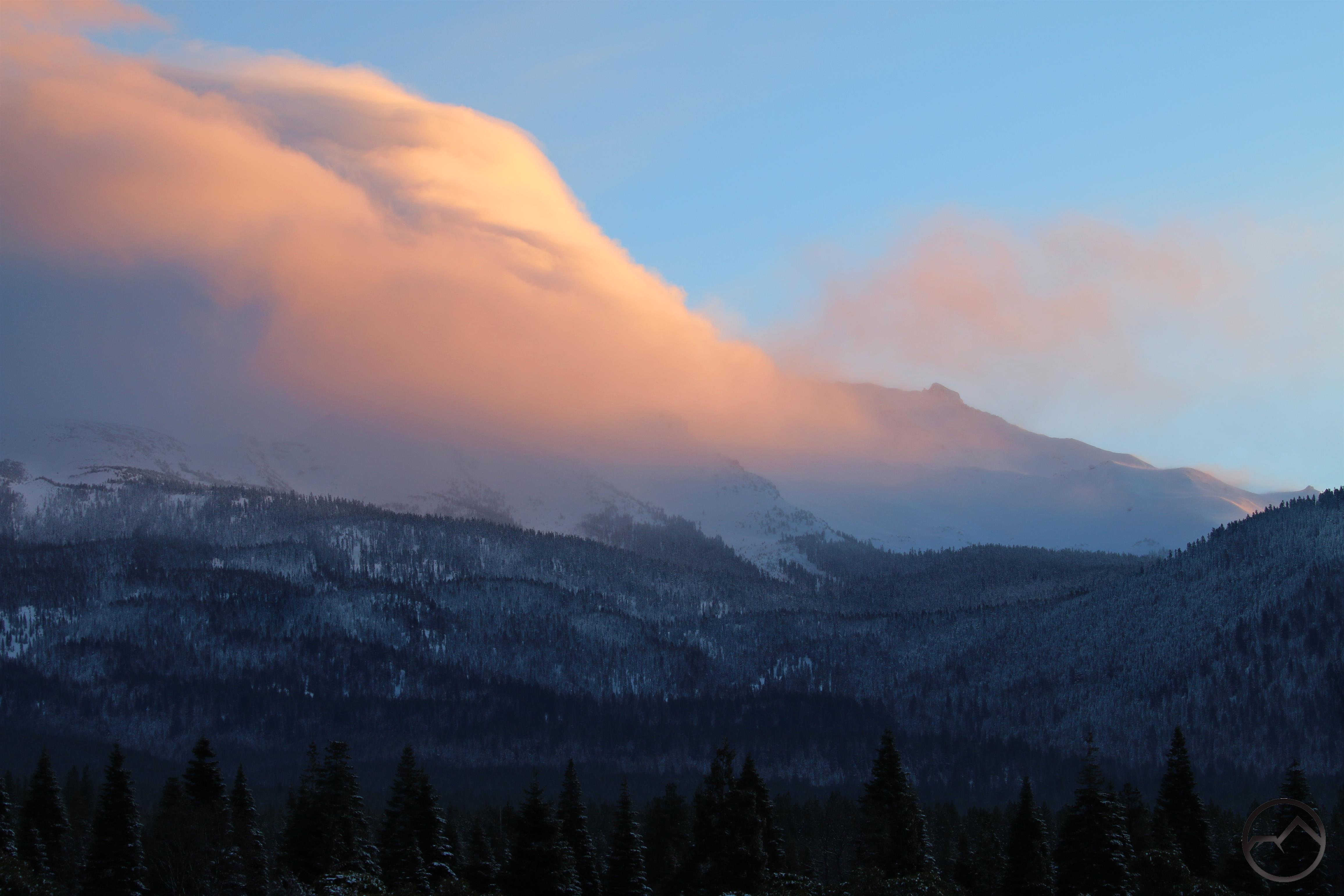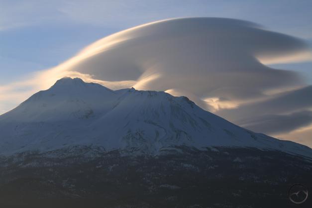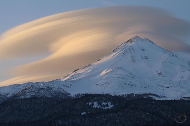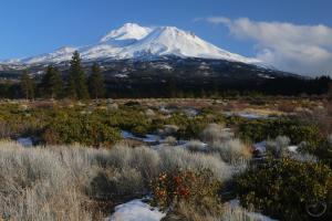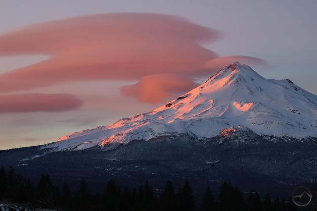 This morning, the first with clear sky in a while, was beautiful. A string of errors kept me from getting on the east side of Mount Shasta but I was able to at least catch the glow along Sargents Ridge as the sun came up this morning. It was just nice to see the mountain, though disappointing to miss the snow flurries all lit up by the rising sun, the view that was surely to be had in McCloud. Needless to say, Mount Eddy and Black Butte were also thoroughly smothered in snow. With Mount Shasta still in shadow on the west side and no unusual clouds to highlight the mountain, these two neighbors offered the more interesting spectacle.