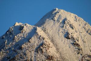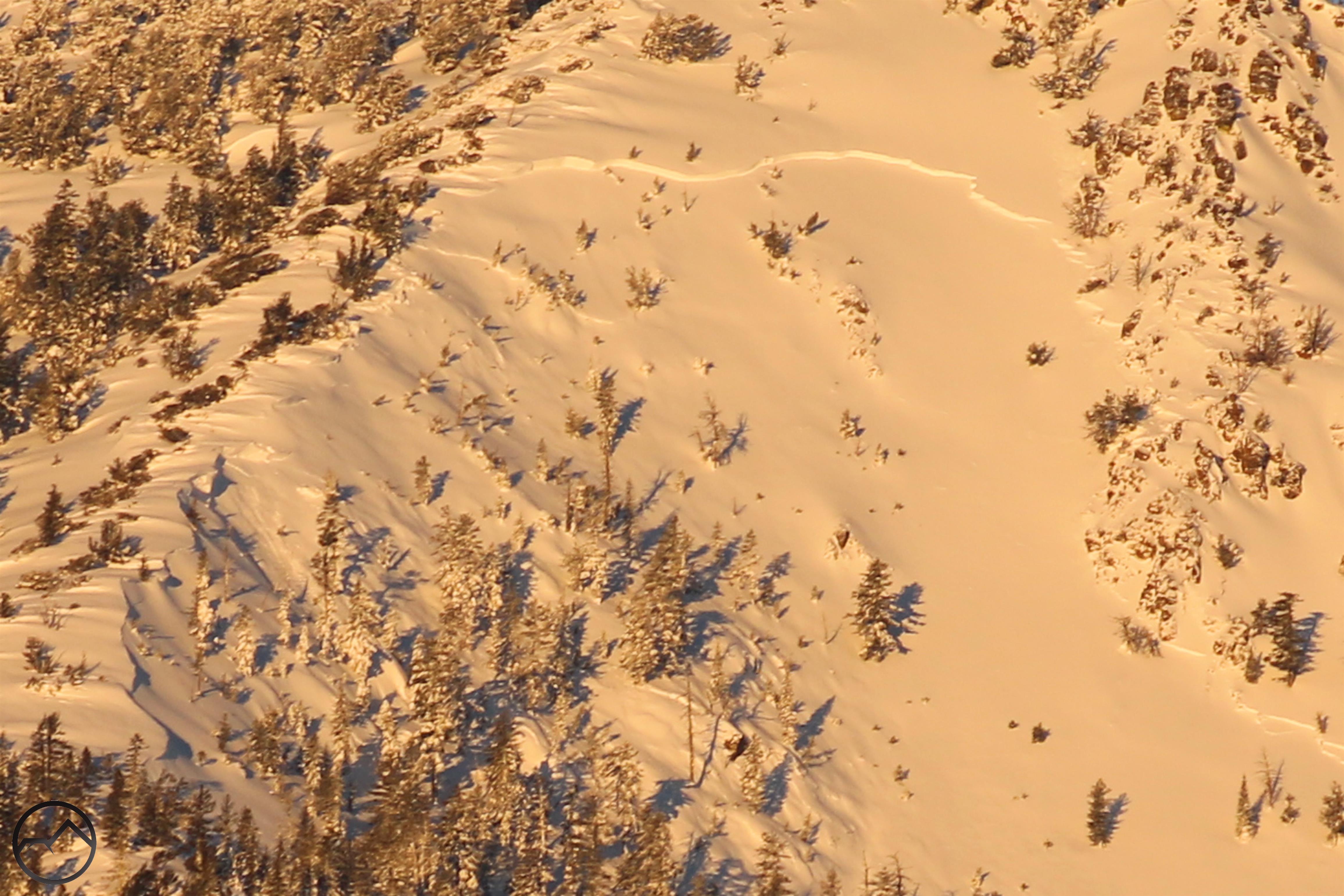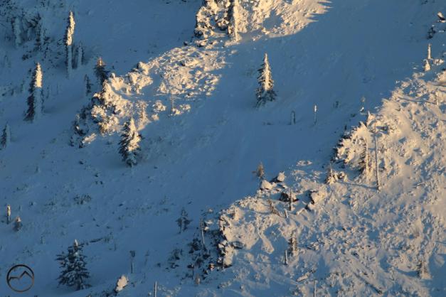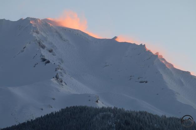 On Mount Eddy, the snow was everywhere and it looked deep too. All the trees in Eddy Bowl were blanketed with deep snow. Some areas where deep snow had piled up, it looked as though avalanches might occur.