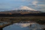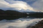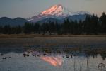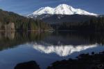 Mount Shasta reflects in a pool by Steamboat Mountain.