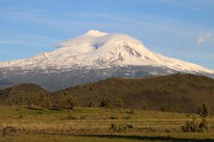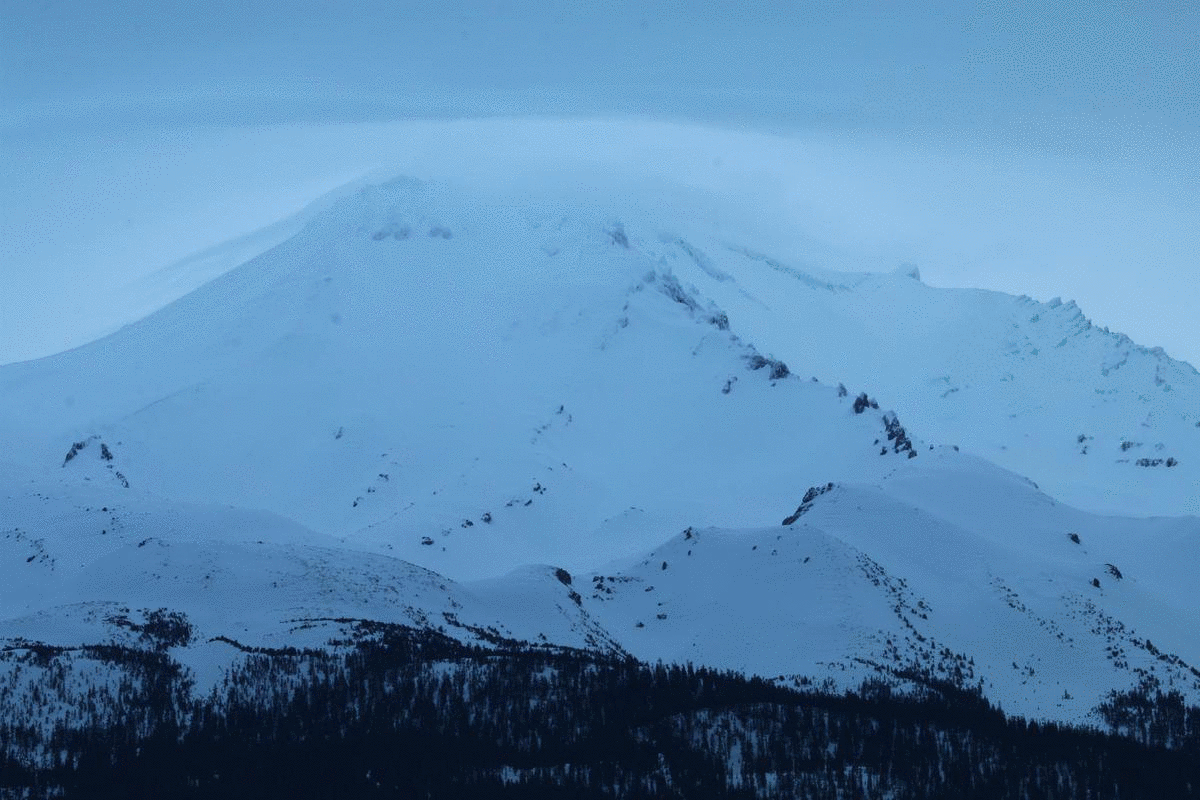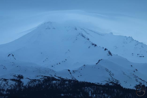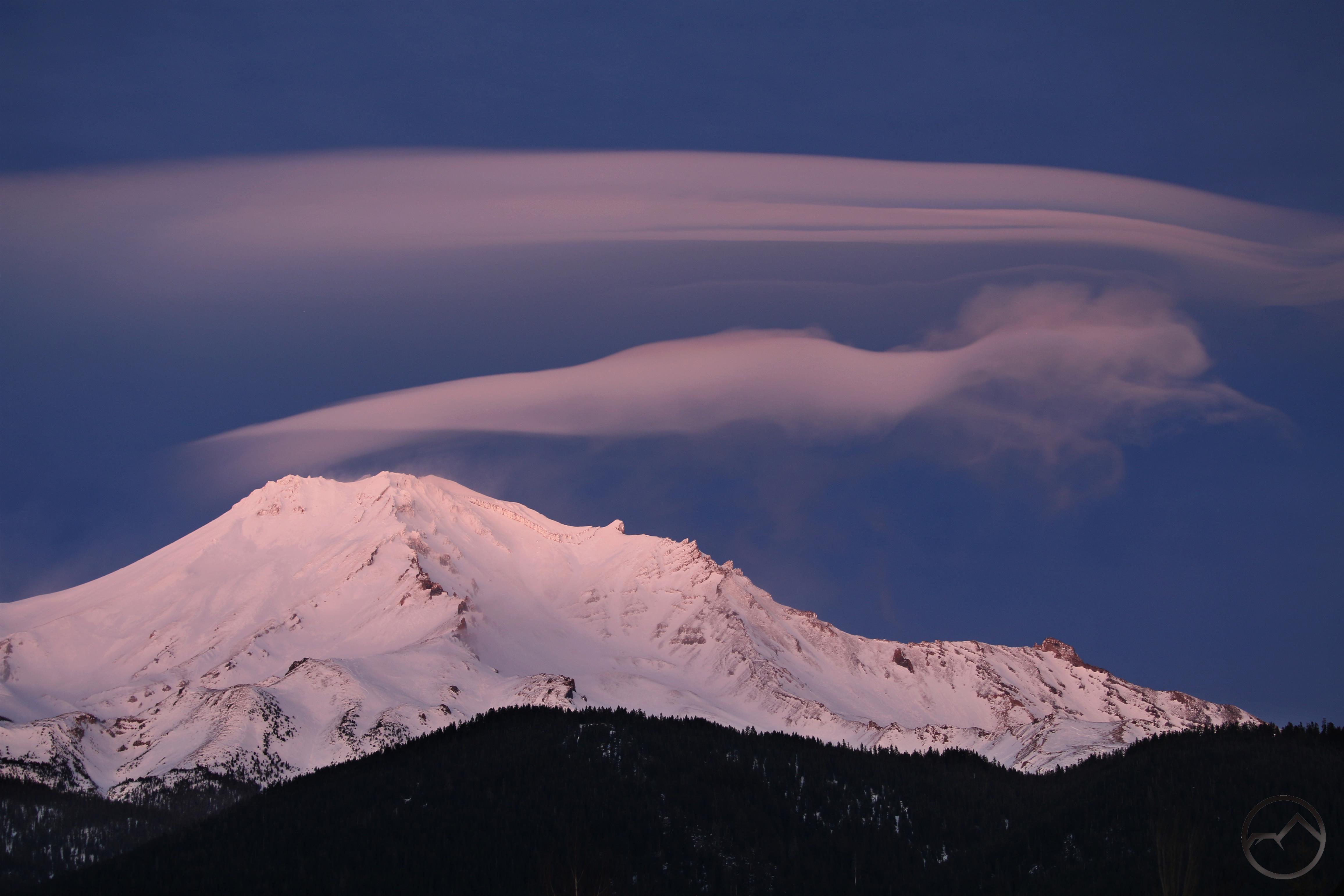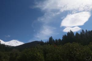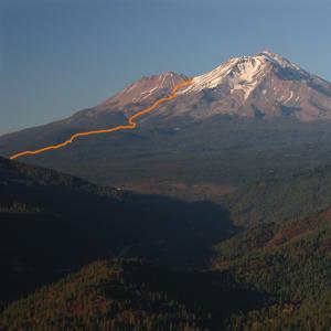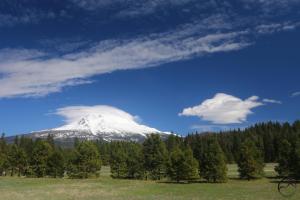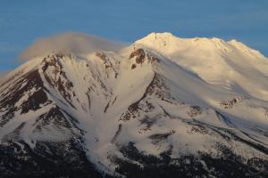 Mount Shasta rises above Pluto Cave