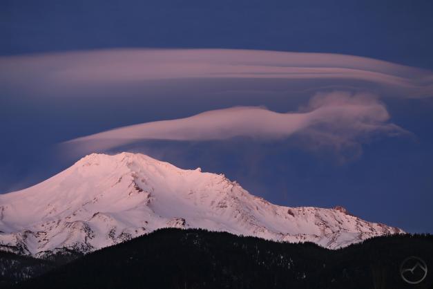 A last view of Mount Shasta before heading into the forest.