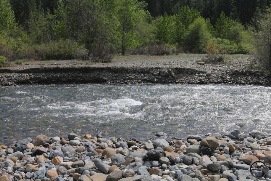 The view across the river to the usual spot where the seasonal bridge is installed.