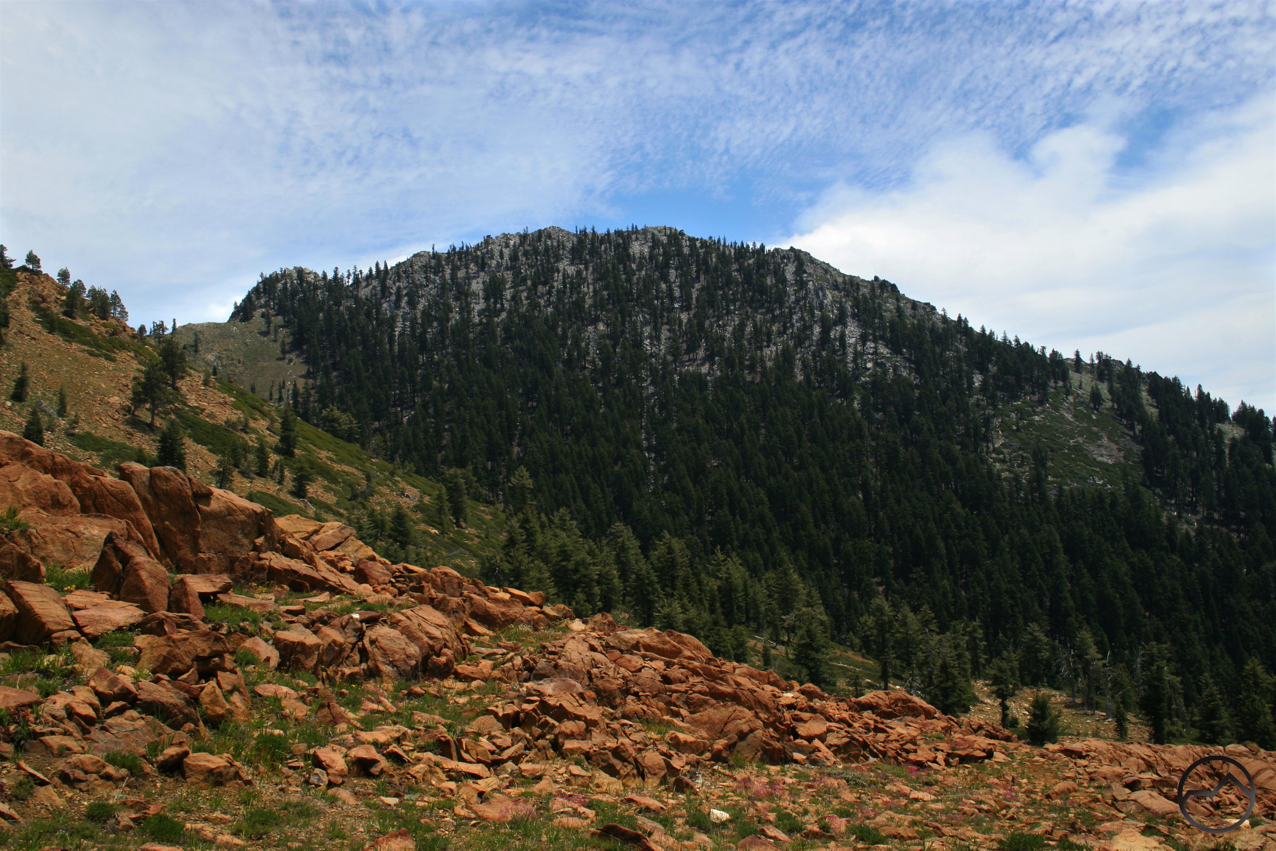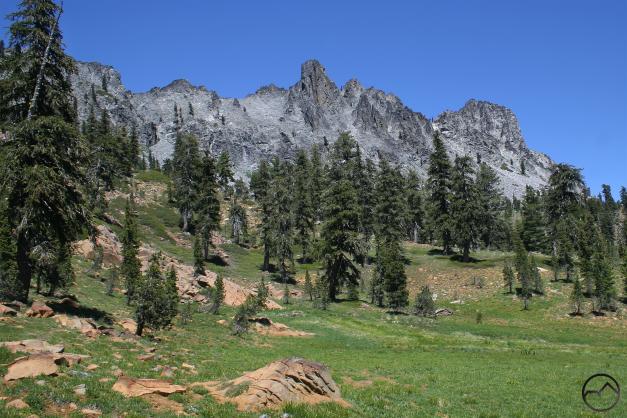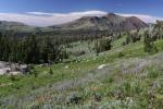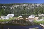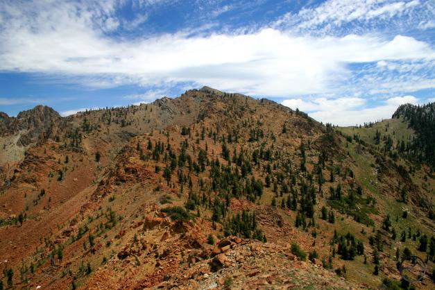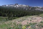 This is the view north from Burst Rock in the Emigrant Wilderness, looking towards Castle Rock and the Chimneys. The entire ridge is composed of volcanic mudlows that have overlain the granite landscape.