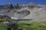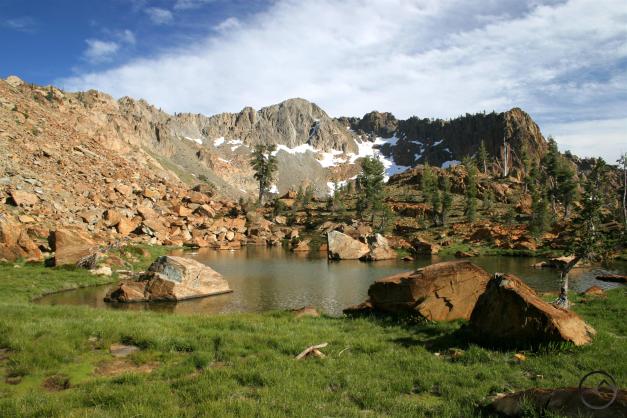 This is a classic example of Central Sierra terrain. The dark walls of the Dardanelles stand on top of the granite that surrounds Sword Lake.