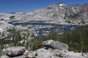 The Northern Sierra is home to Lake Tahoe, another of California’s most famous mountain landmarks. In fact, the large lake anchors the southern end of this area, which extends north to the Lake Almanor area, where the Sierra Nevada ends and the Cascades begin. Geologically, this region is remarkably different from the southern part of the range. Rather than a vast granitic batholith, the Northern Sierra is composed primarily of sedimentary rocks, with significant intrusions of smaller granite batholiths. In some areas this rocky melange is then overlaid with lava flows. Ironically, many of this areas most iconic landscapes are granite, so to many visitors, there seems to be little difference between the Northern Sierra and what lies to the south. This is especially the case in the Desolation Wilderness and along the southern half of Lake Tahoe. Interestingly, the complex geology of the Northern Sierra is strikingly similar to that of the Klamath Mountains. This latter range is believed to have once been a part of the Sierra Nevada and was wrenched away from the rest of the range and deposited closer to the coast. Anyone who has traveled through the granite heart of the Trinity Alps and felt like they were in Desolation Valley near Lake Tahoe would be well within their rights to think so.