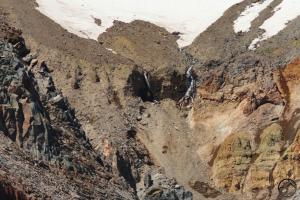 Geologically, at its core, the Central Sierra is a continuation of the large granite pluton that is the defining feature of the Southern Sierra. Granite dominates the high country of the Central Sierra and is nearly ubiquitous. However, over the granite there are several large volcanic mudflows that have been hardened into a cap of dark brown rock. It is not unusual to see dark ramparts and brown peaks sitting like islands above a sea of gleaming white granite. This is the essential appearance of the landscapes of the Central Sierra. Some examples can be seen below: