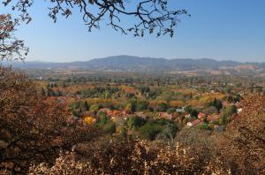 For Tuesday’s sunset, I headed up onto Girard Ridge, which has a particularly pleasing perspective on Mount Shasta. This view is also blessed with a lot of good fall color. While most of the trees around the base of the mountain have faded in the fall show, many of the trees above the Sacramento River are still clinging to their leaves, giving the forest bright spots of color. The addition of clouds to catch the evening light made this view even better!