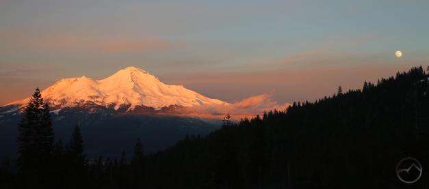 It had been so long since I had paid much attention to things outside, I was pleasantly surprised to see the moon rising alongside Mount Shasta. It was nearly a full moon at that!