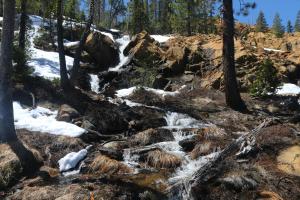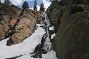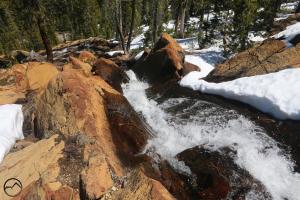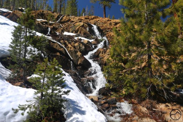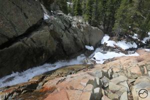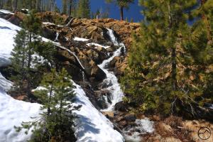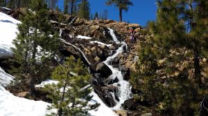 The other big waterfall destination for us was the series of cascades at the headwaters of Tamarack Creek. It is still pretty snowbound at the higher elevations but the warm weather and exposed rock meant easy climbing. The cascades drop a total of over 350 feet in a series of precipitous plunges. With waterfalls, great, superbly tractioned rocks, it is a giant playground perfect for a spring afternoon.