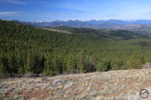 - A view west, to peaks from the Trinity Alps, Russian Wilderness and Marble Mountains.