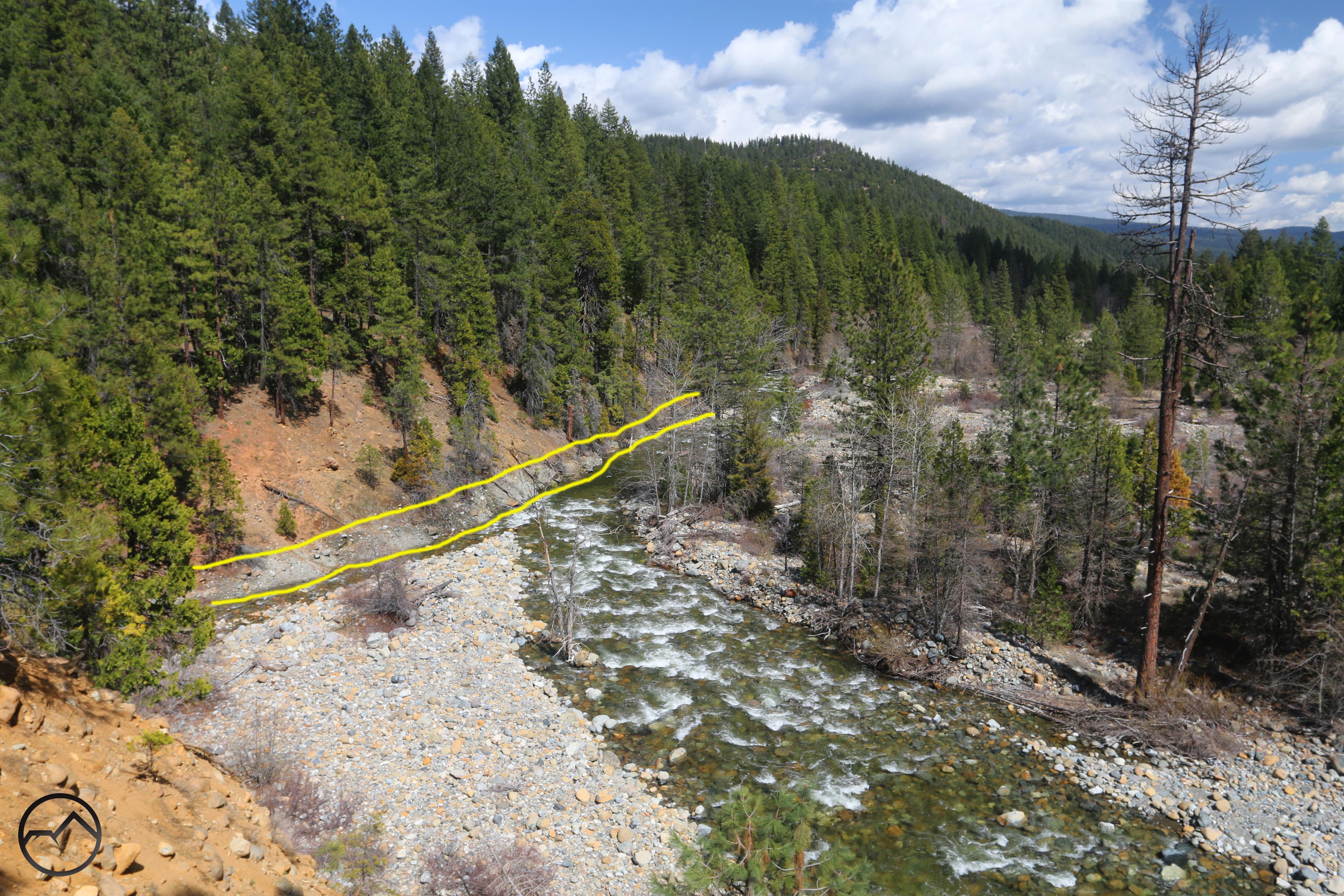 - Looking down on the confluence of Deer Creek and the Sacramento River.