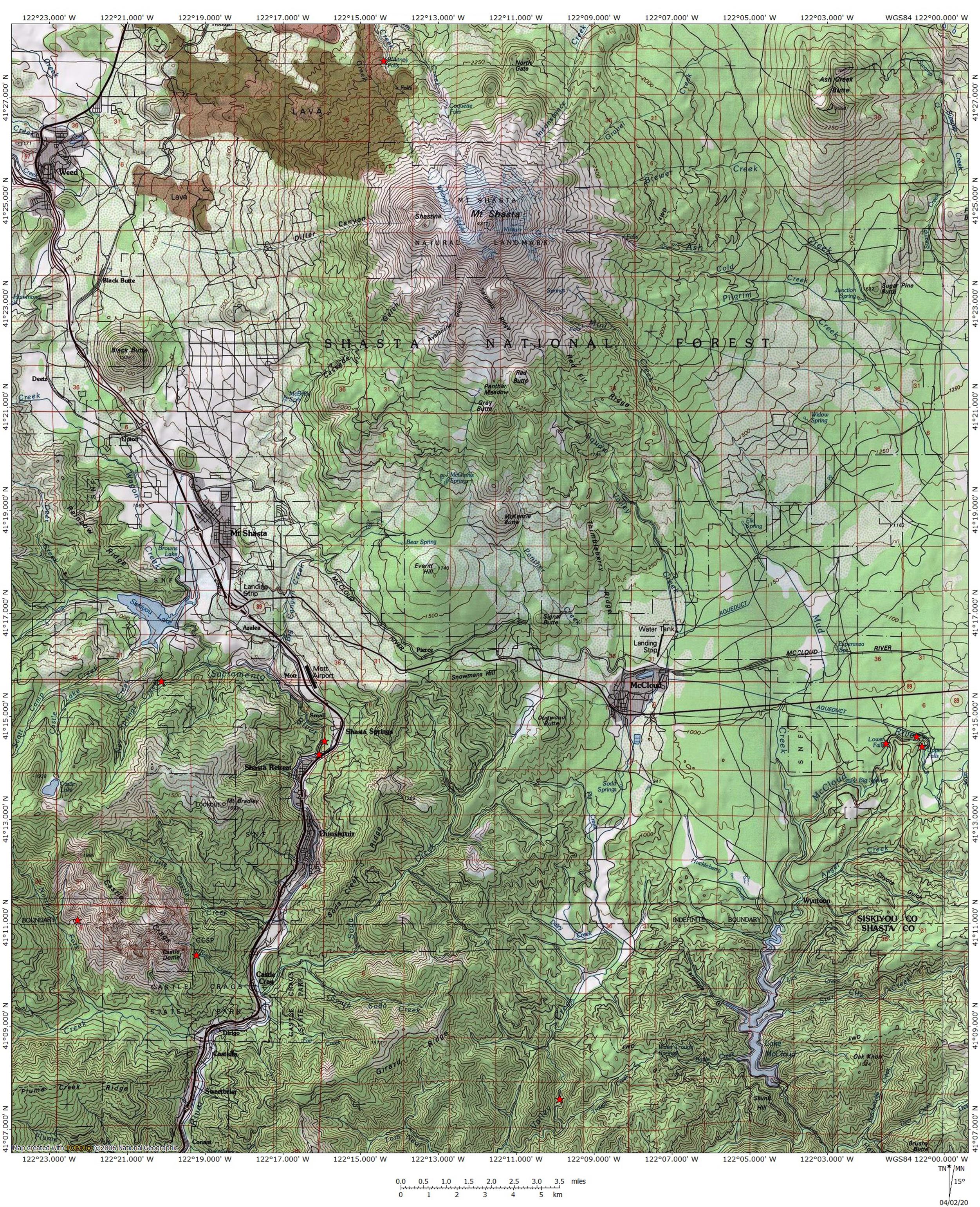 - Mount Eddy and the snowy high country of the Trinity Divide.