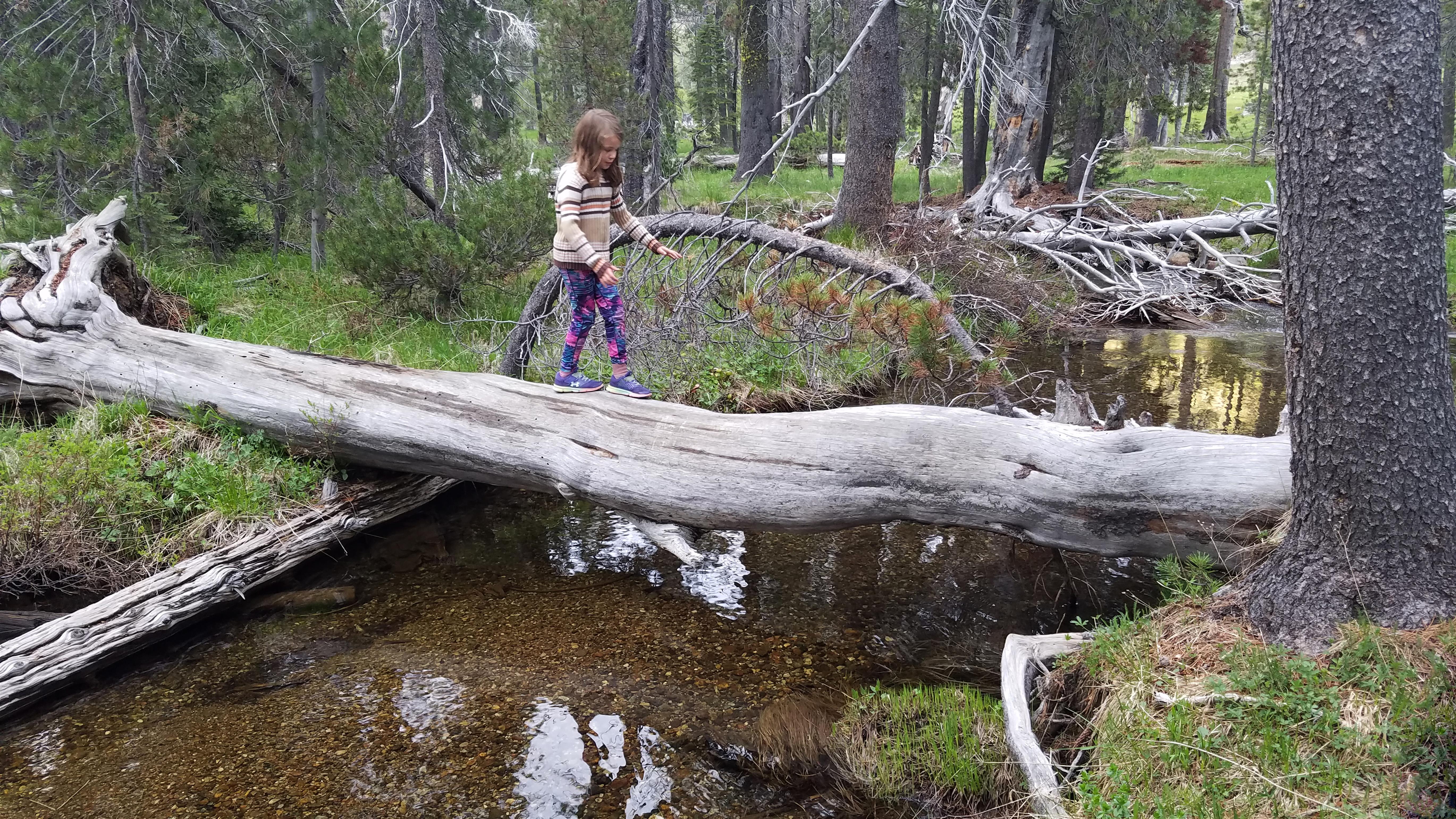 Just a short distance from the Cement Bluff, High Camp Creek passes through a block of hard, seemingly erosion-resistant cement. This is the easiest of the riparian formations to access, since it is located right on Parks Creek Road just west of Deadfall Meadow. Here the creek pours over a trio of small cataracts formed by low ledges of cement. Potholes, likely formed by rocks being dislodged by the water are found in the cement.