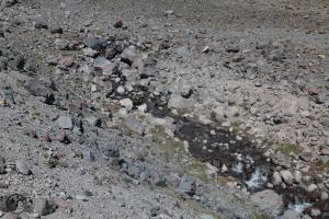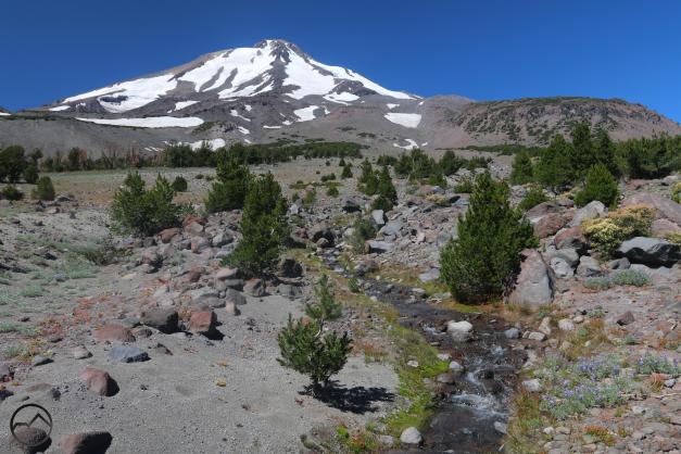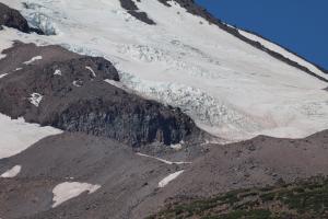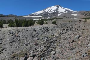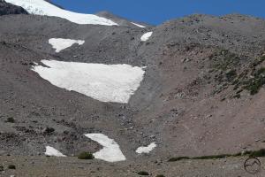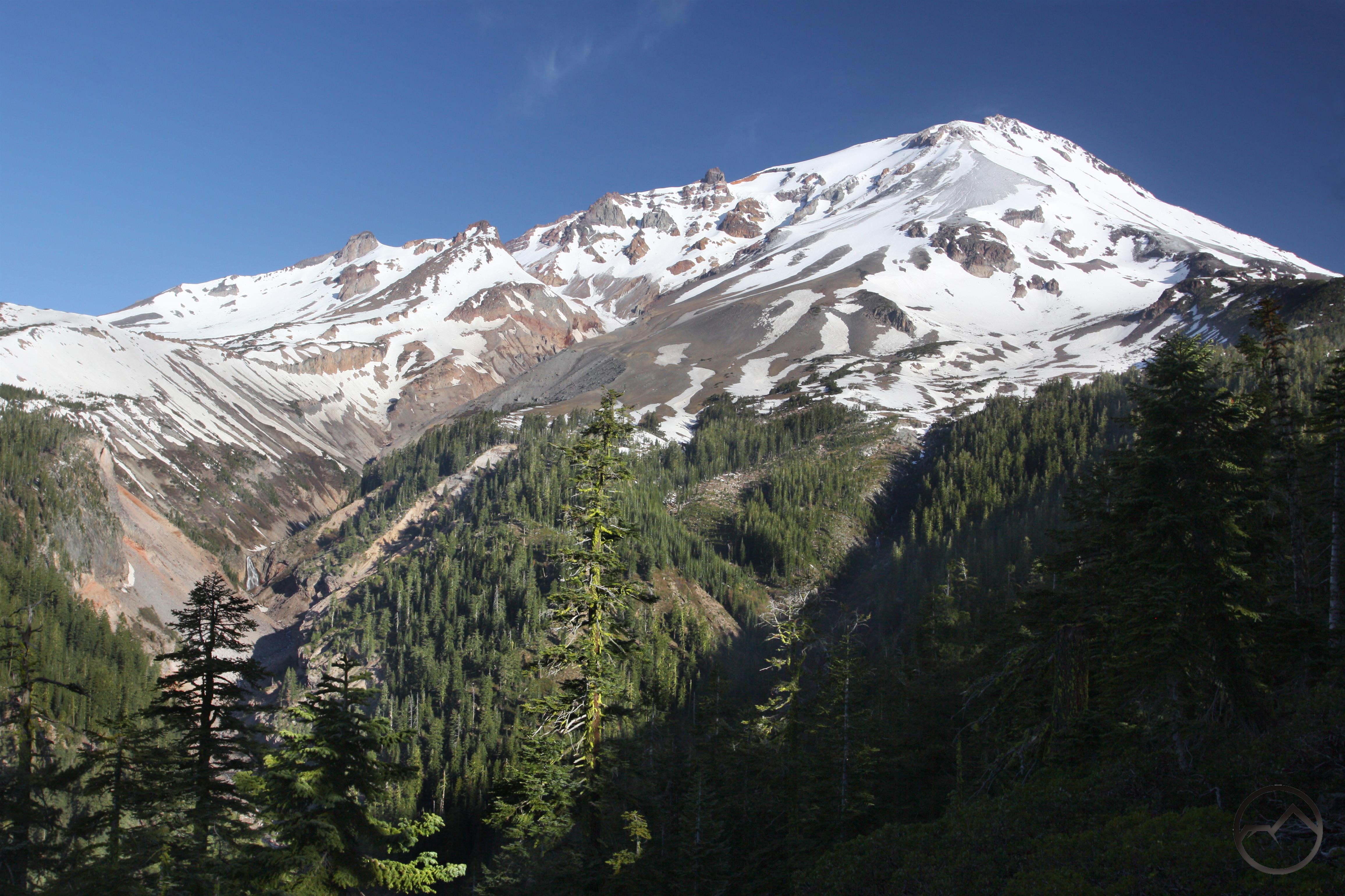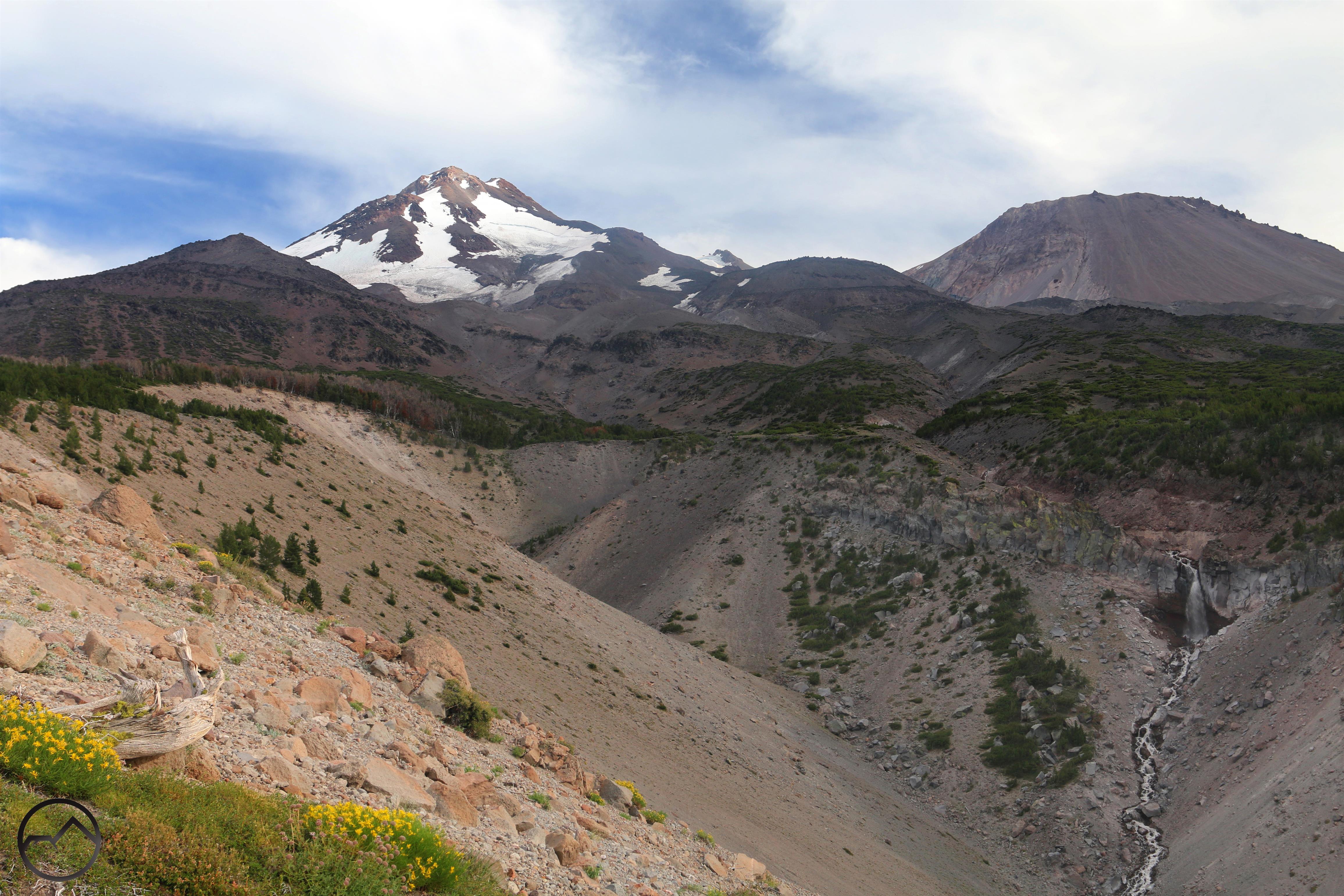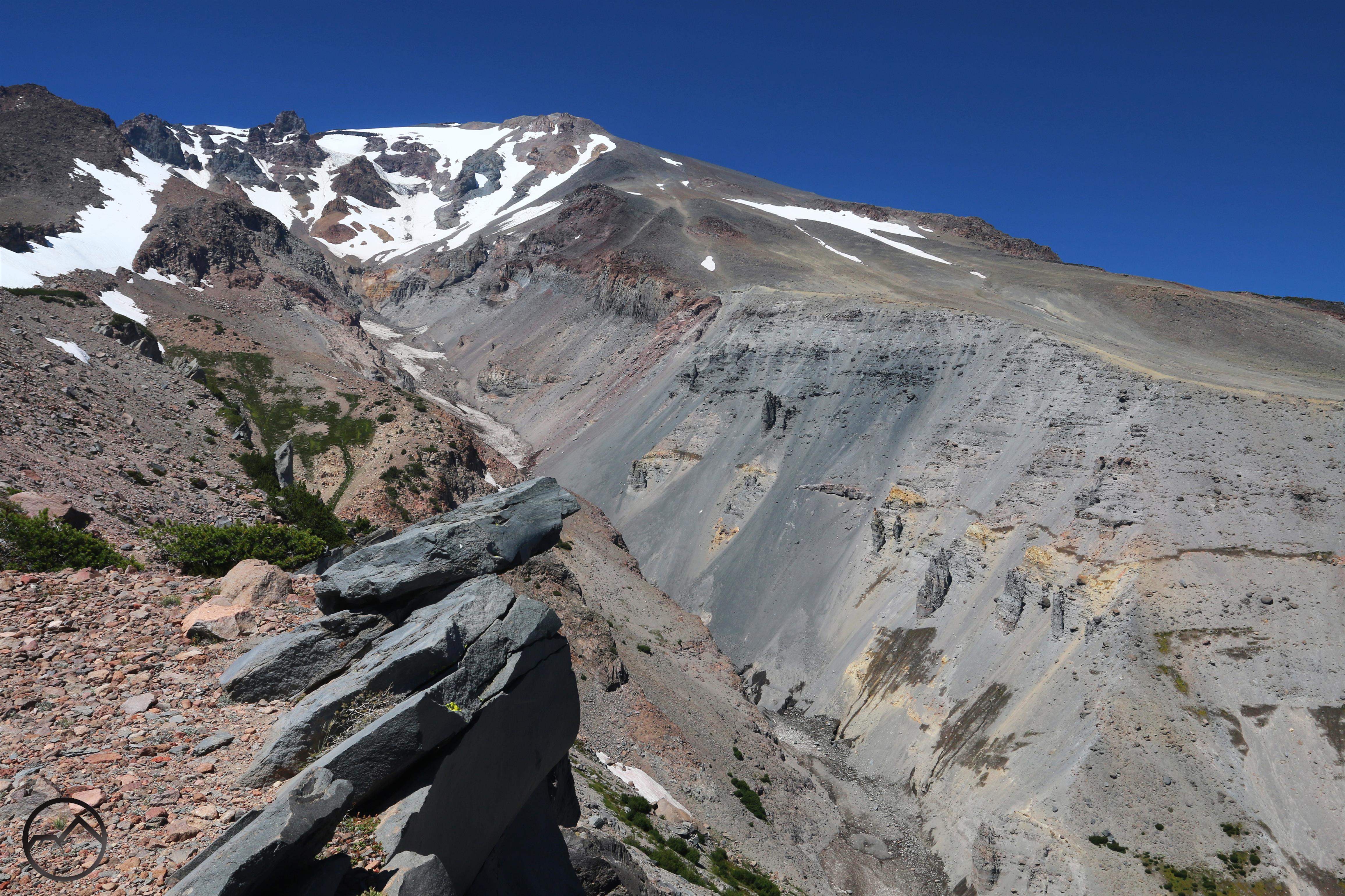 There is, perhaps, no more epic feature on Mount Shasta than Mud Creek Canyon. Over 1,000 feet deep and cutting through an incredible number of Mount Shasta’s volcanic strata, this is one of the greatest perspectives on the Mountain. Colorful, gnarled spires loom near the summit alongside the Konwakiton Glacier while towering hoodoos cling to the cliffs of the upper canyon. Seeps and spring are numerous, leaking out from between various layers exposed within the canyon. The sound of rockfall is punctuates the constant din of Mud Creek cascading through the depths. At the very head of the canyon Konwakiton Falls pours in two twin streams over vividly colored cliffs. In the end, it is hard to enumerate all the incredible features of this marvelous vista!