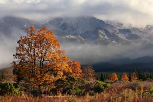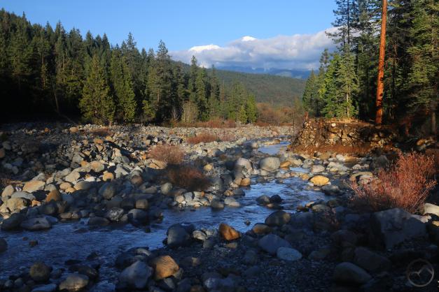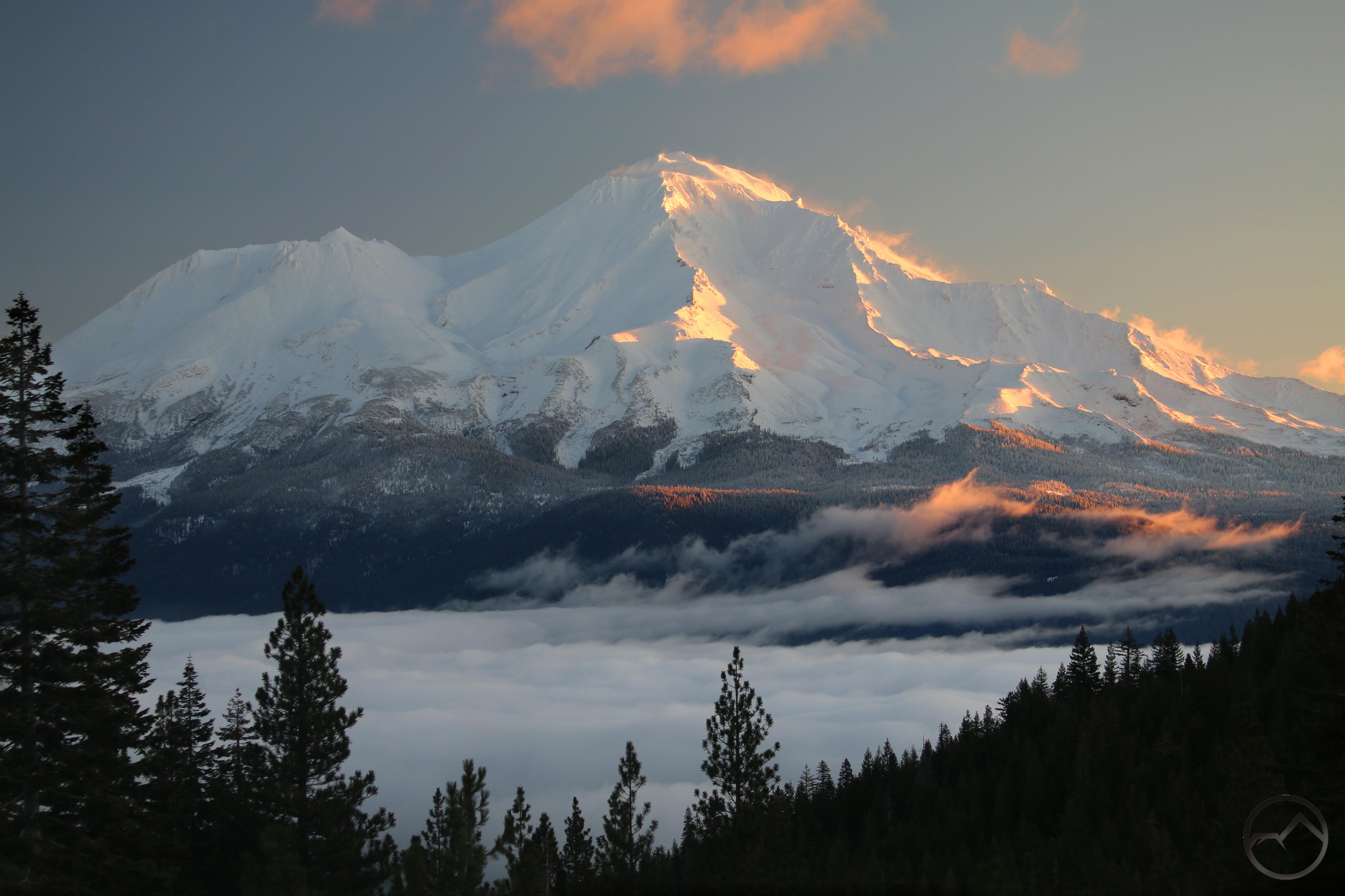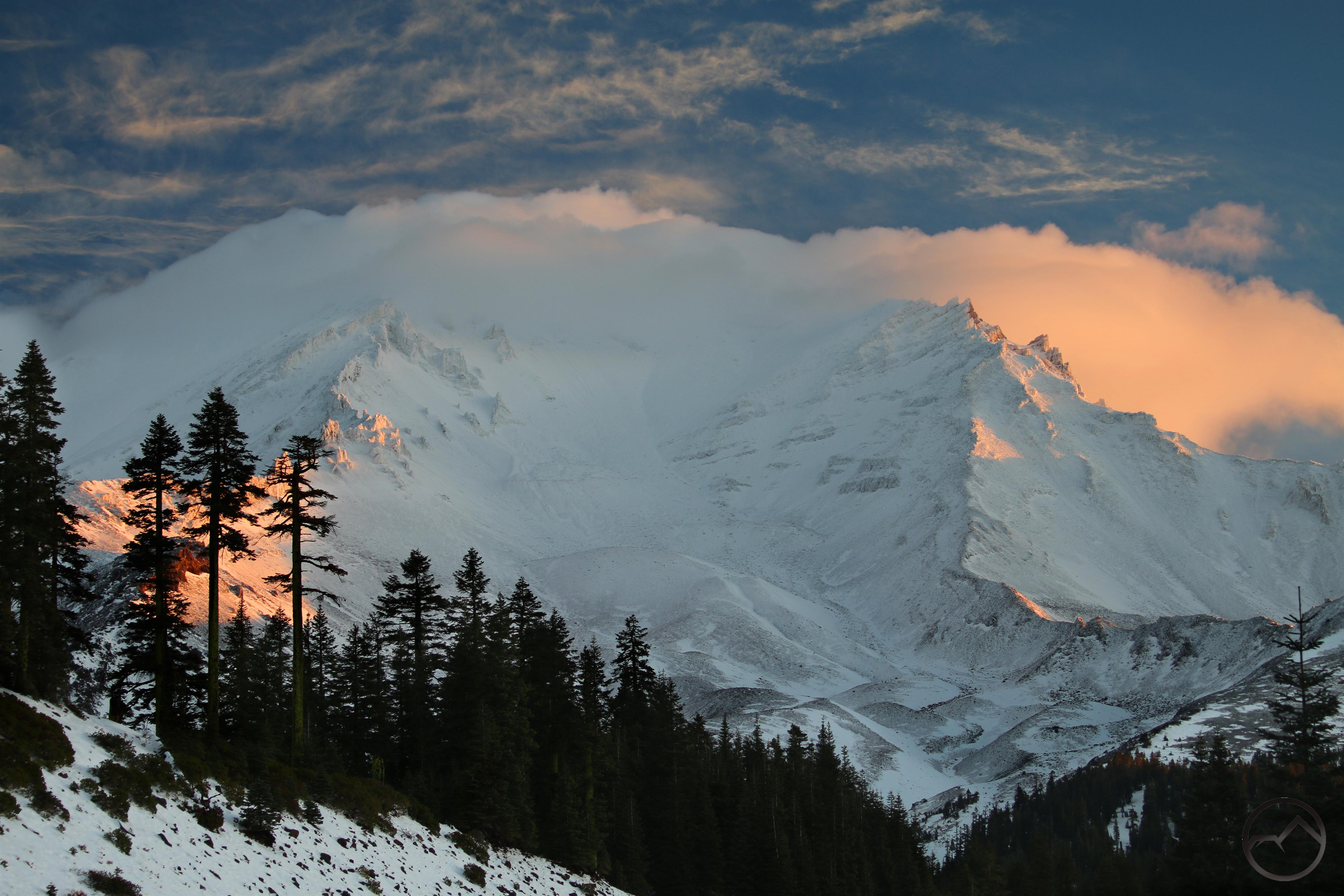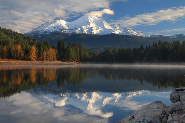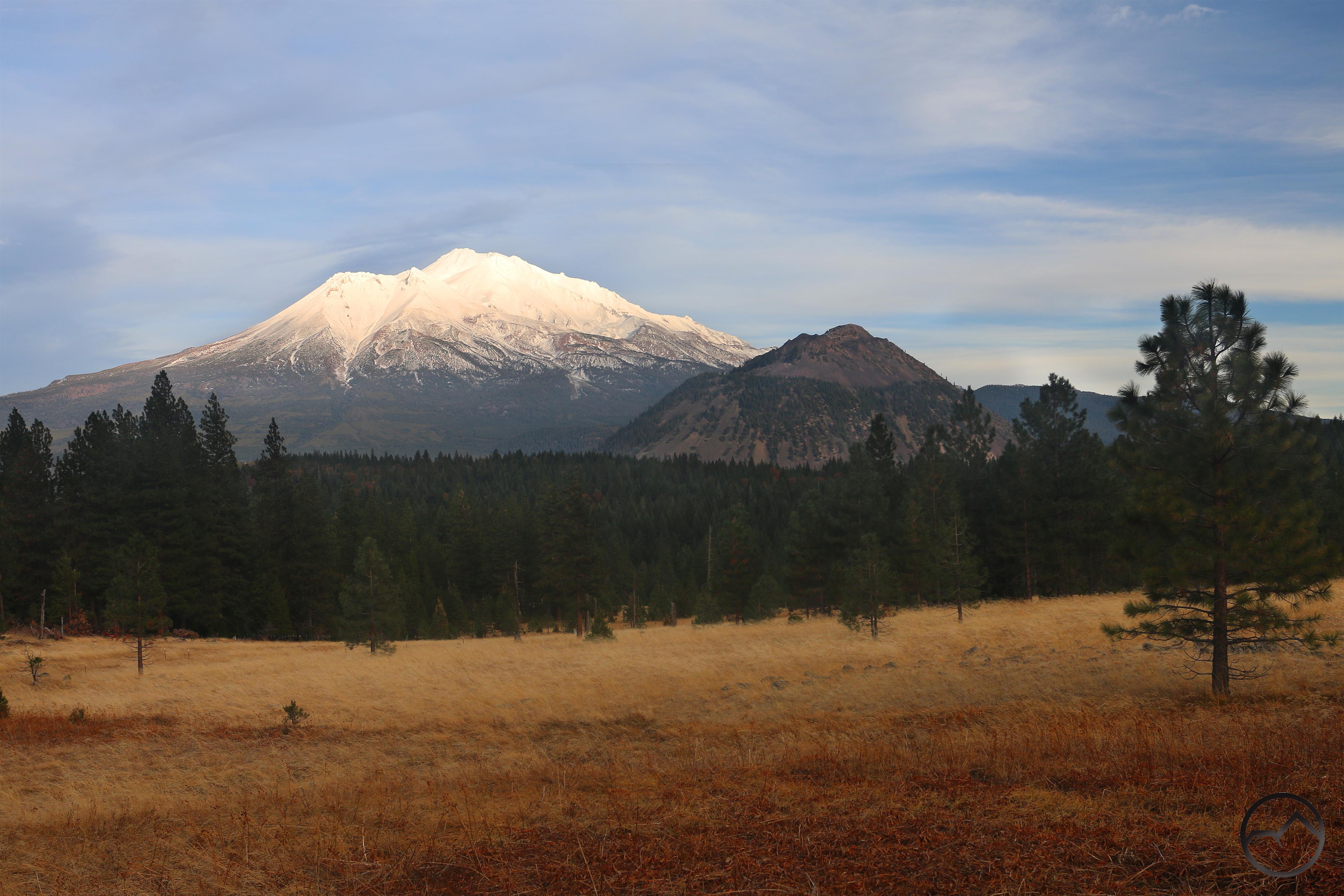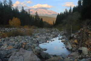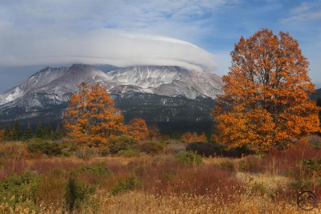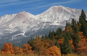 A beautiful fall Mount Shasta morning, still with some vestiges of autumn color.